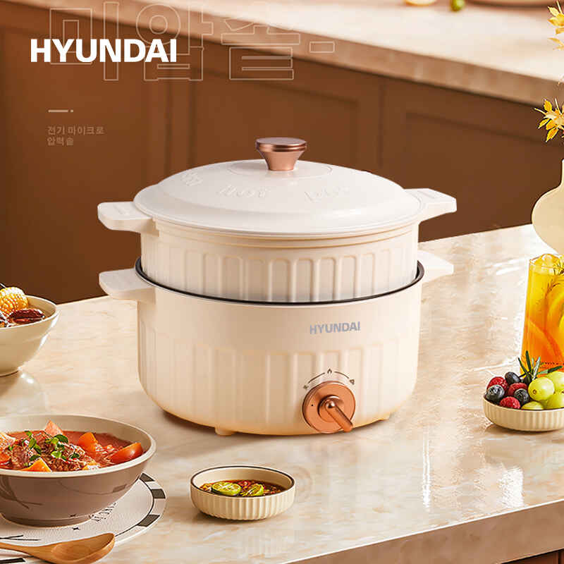 HYUNDAI多功能电火锅TS-20D电煮锅多功能蒸煮煎炒一体电热锅电火锅