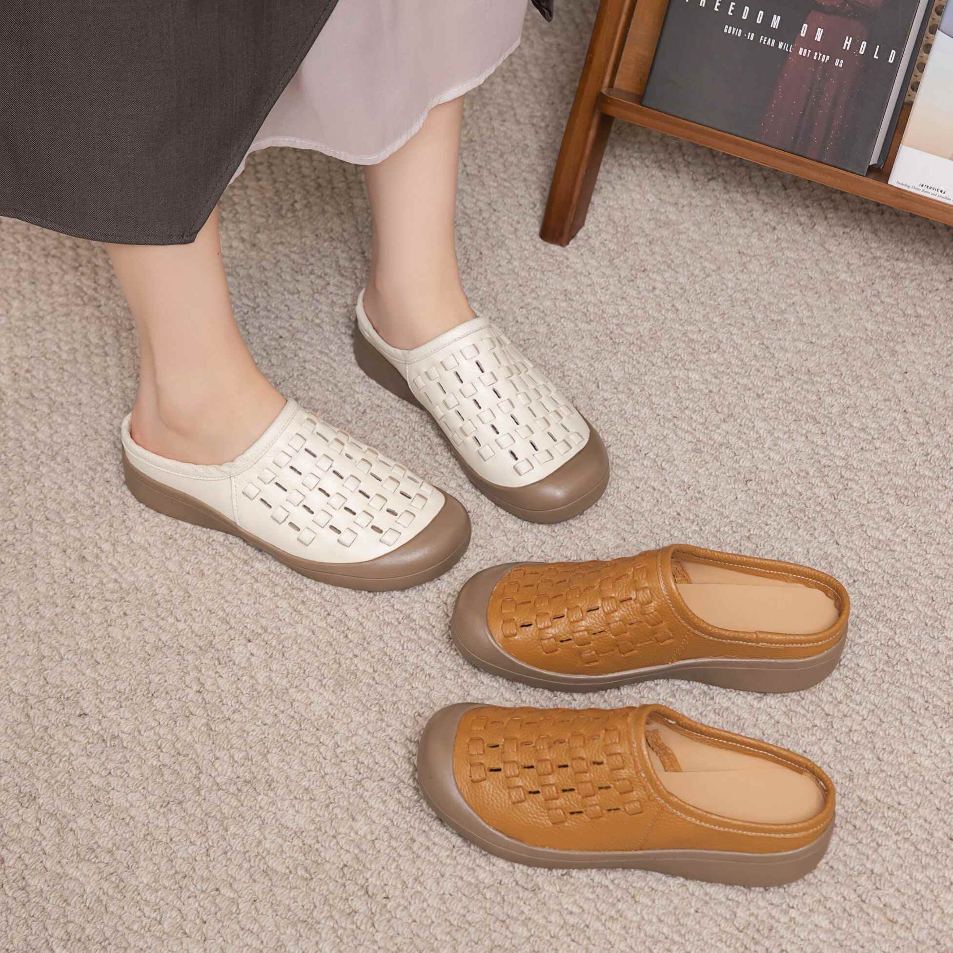 3038头层牛皮包头拖鞋女新款夏季外穿凉拖平底复古风一脚蹬懒人鞋