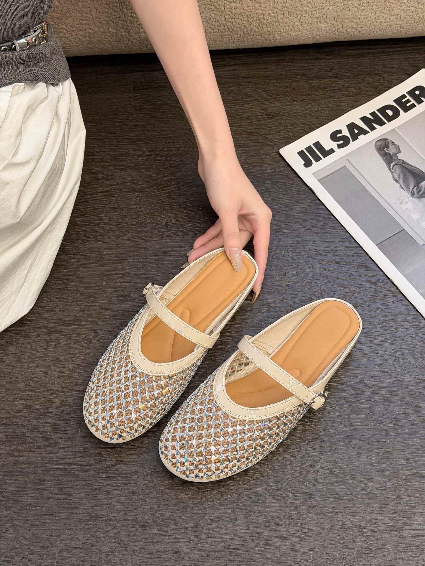36012网纱透气时装外穿包头拖鞋女百搭室外软底凉拖新款时尚低跟妈妈鞋