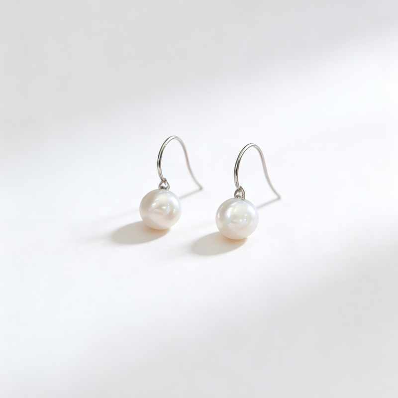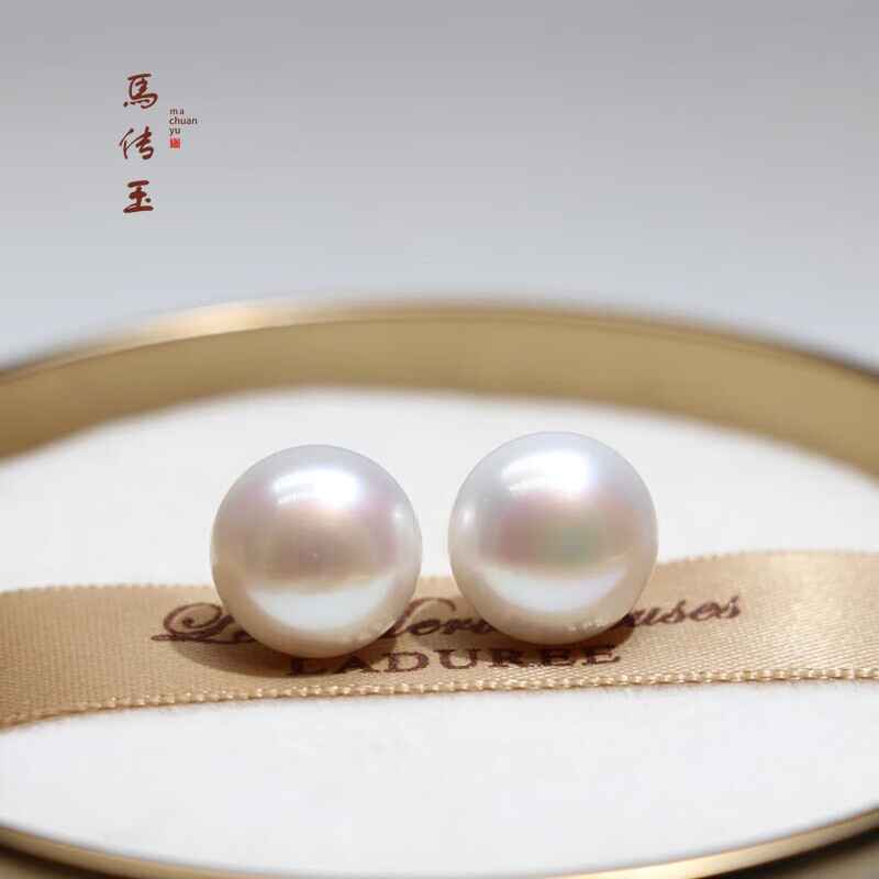 馬传玉S925银针馒头圆淡水珍珠耳钉8-9m精美礼盒MCY201