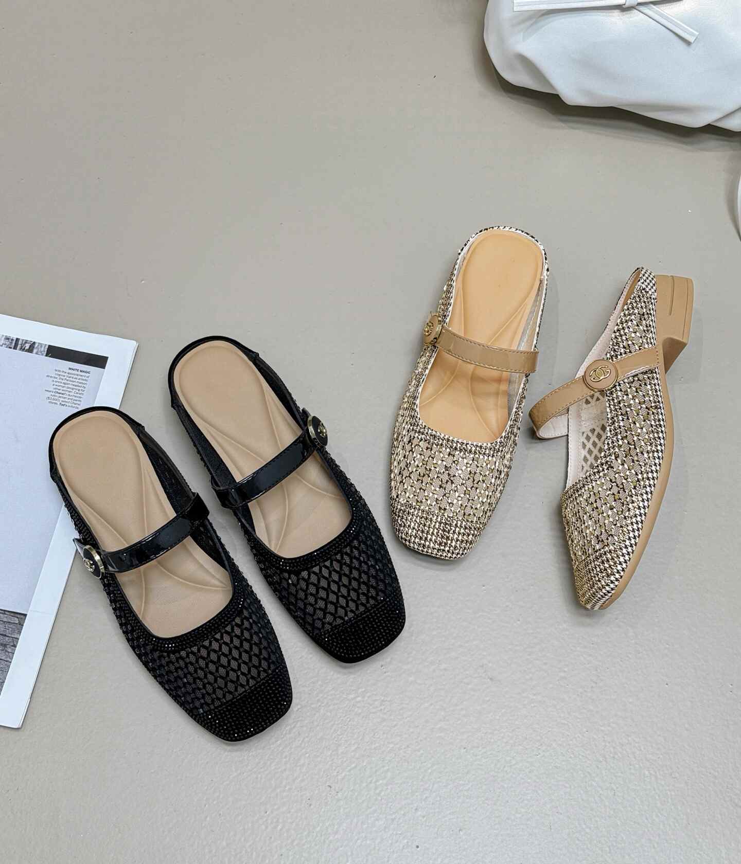 36015网纱透气时尚水钻时装外穿包头拖鞋女百搭室外软底凉拖防滑夏天鞋