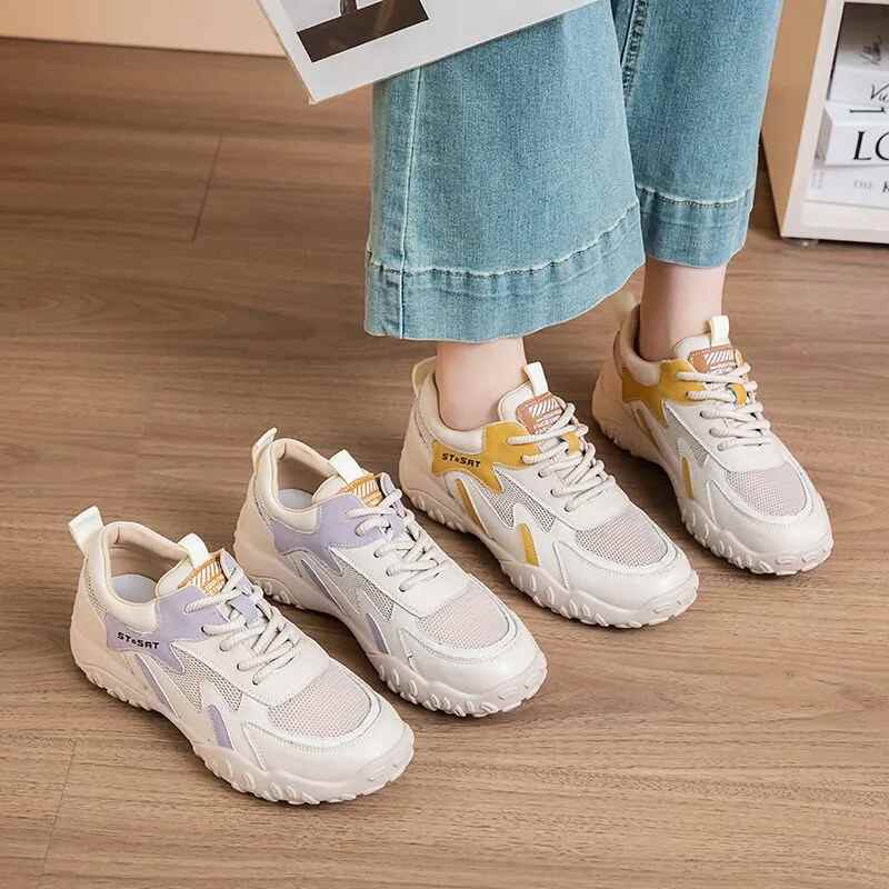 2018美式复古真皮阿甘鞋女夏季新款网面透气运动休闲鞋百搭小白鞋