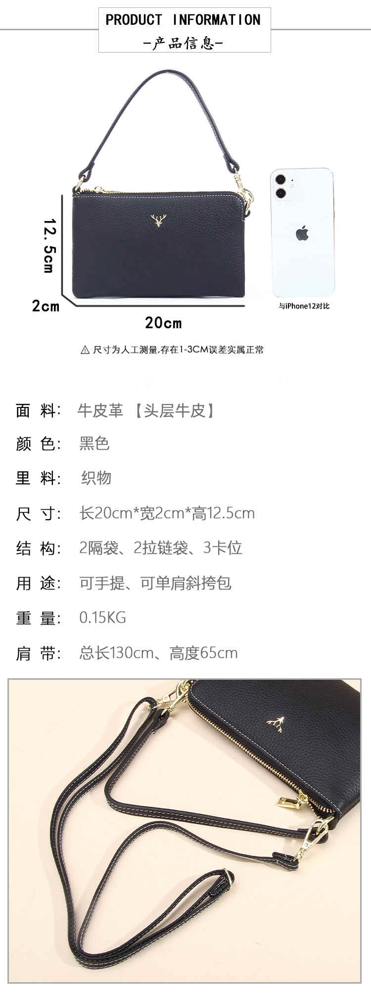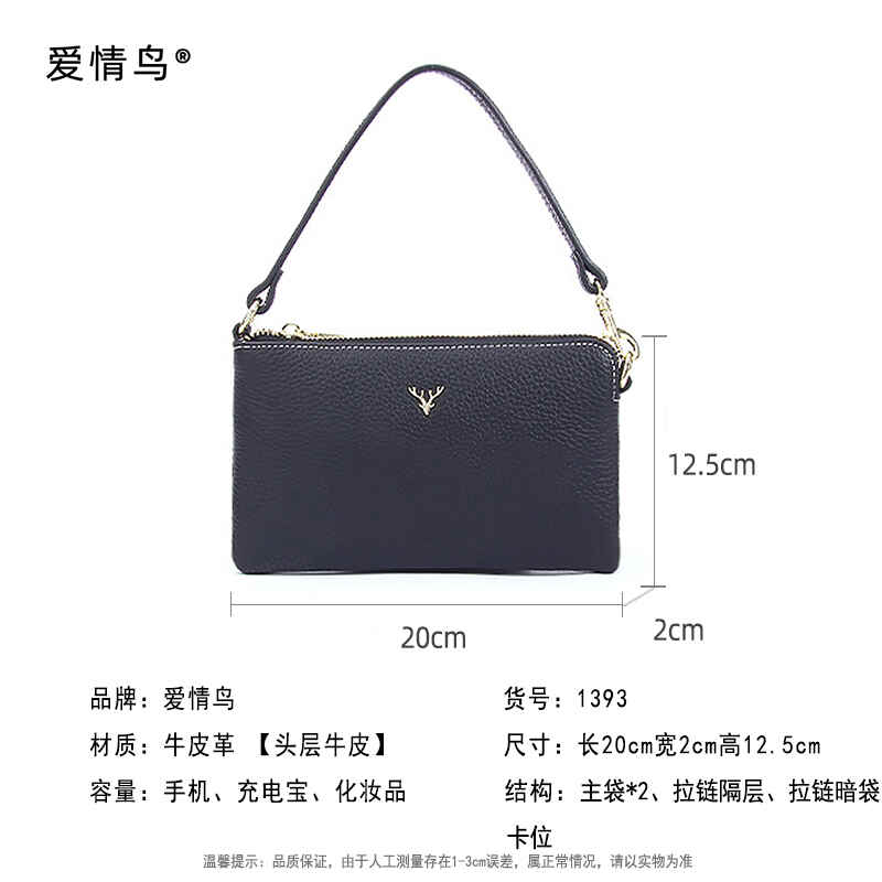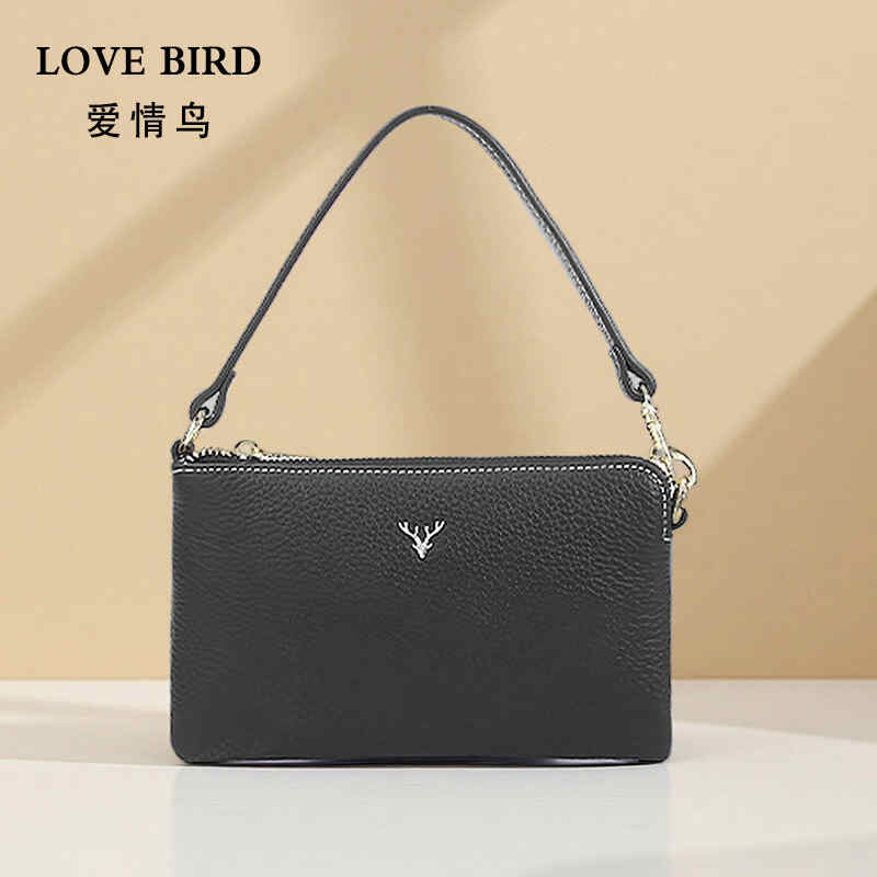 爱情鸟时尚质感小鹿头手机包头层牛皮单肩斜挎包