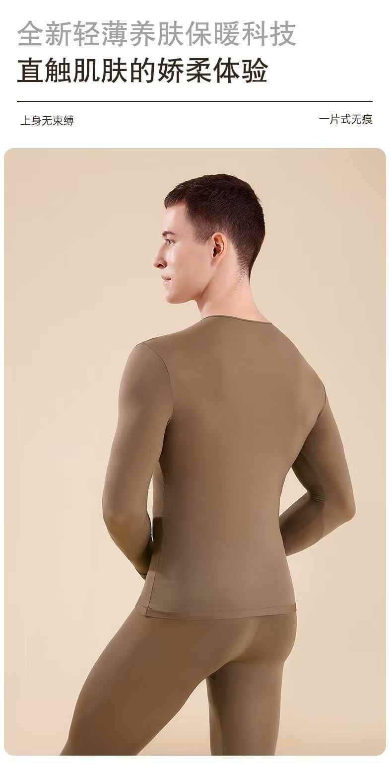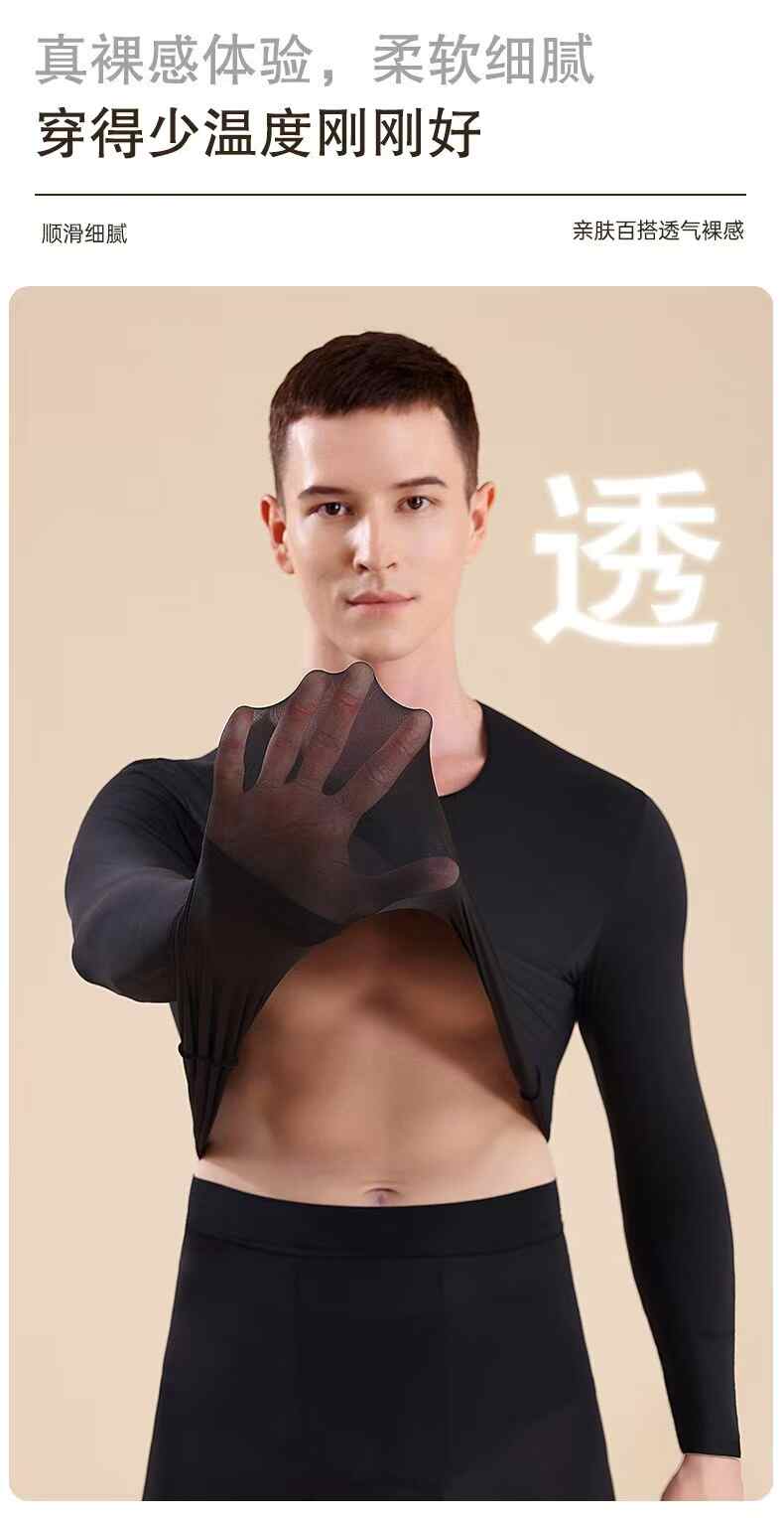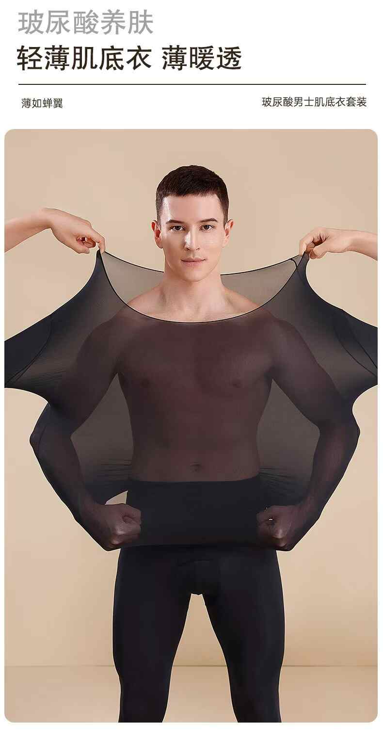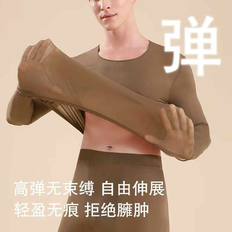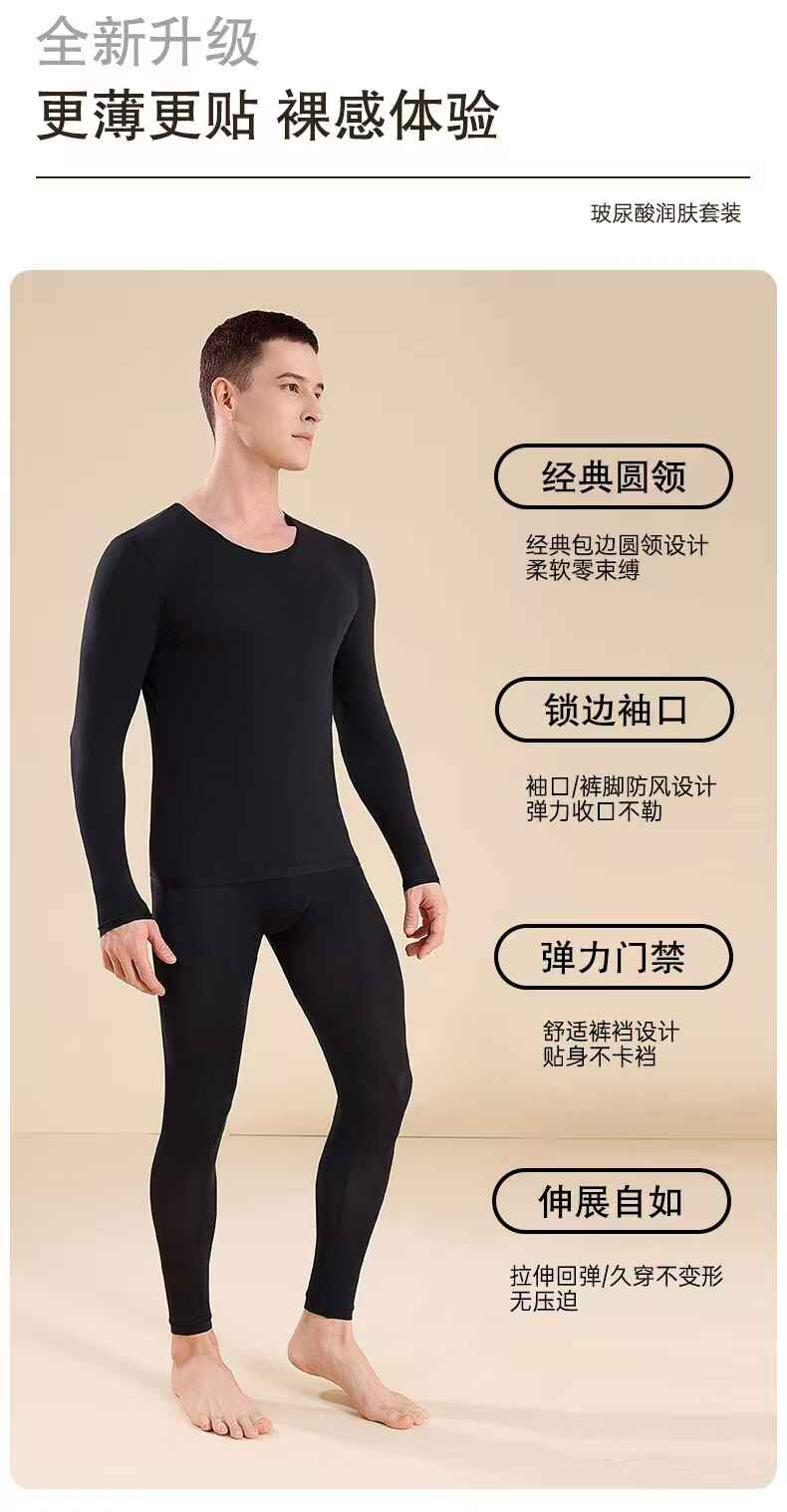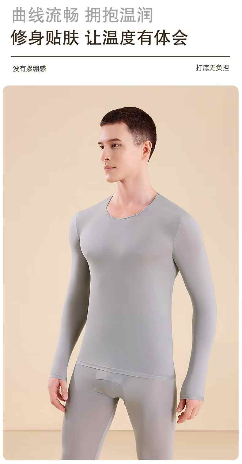 男士超薄保暖内衣恒温无痕玻尿酸肌底衣圆领打底纯色秋衣秋裤套装