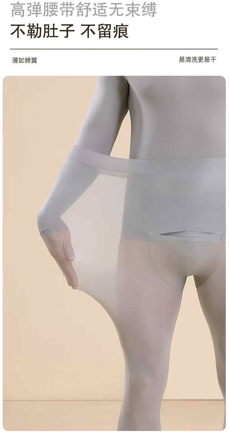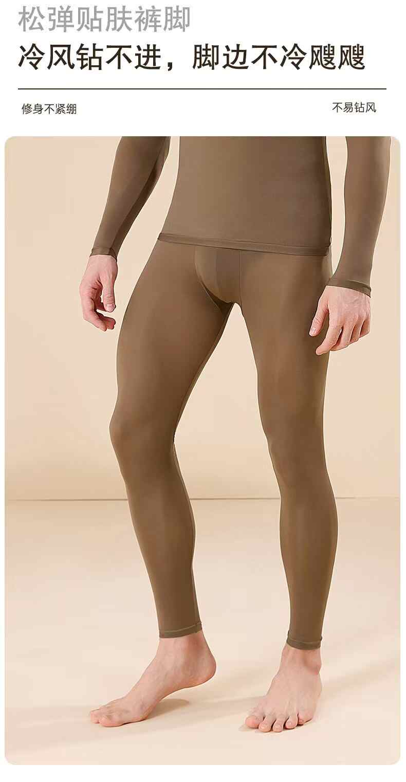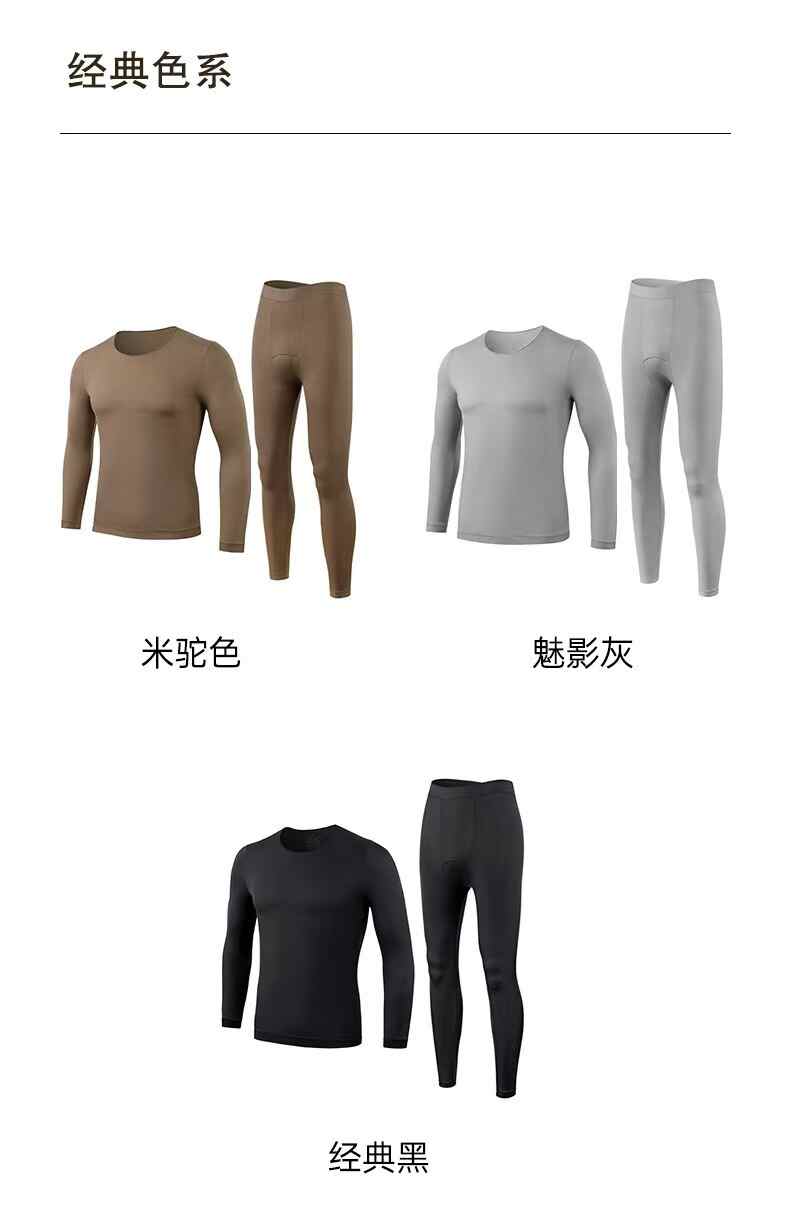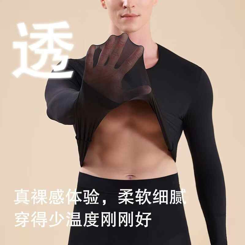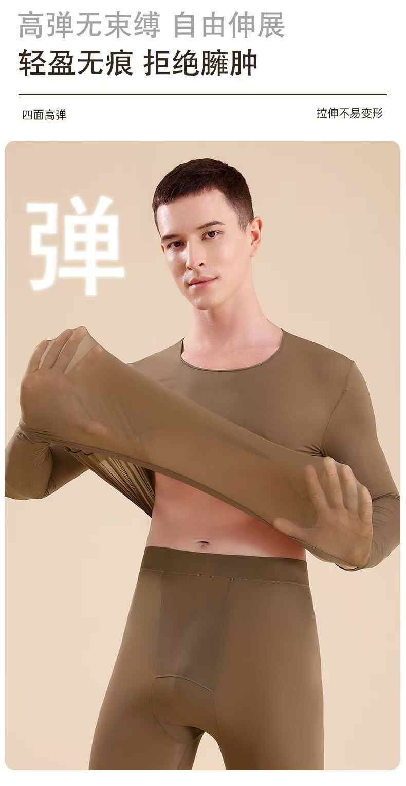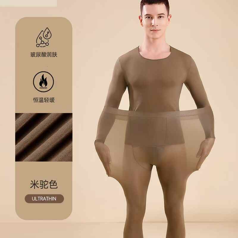 男士超薄保暖内衣恒温无痕玻尿酸肌底衣圆领打底纯色秋衣秋裤套装