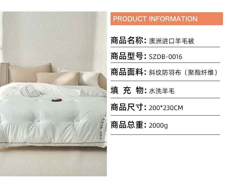 舒正 澳洲进口羊毛被冬被深睡控温被褥冬季被芯被子SZDB-0016