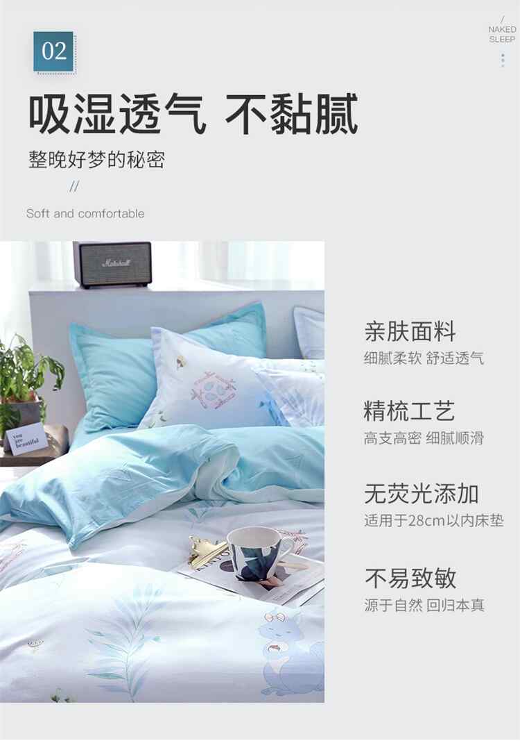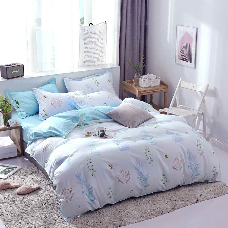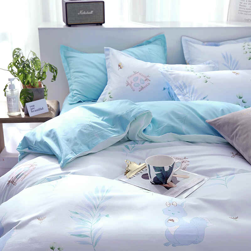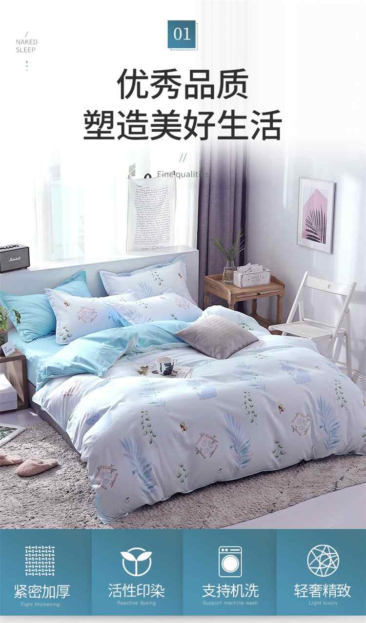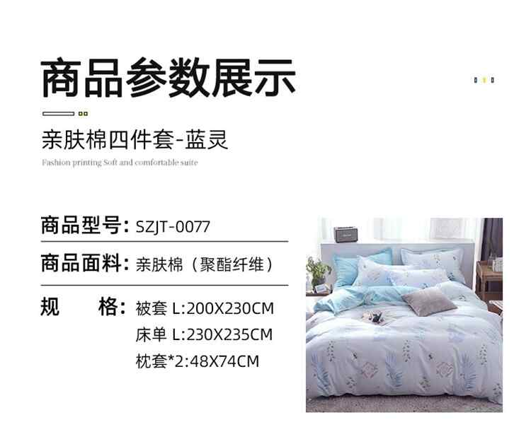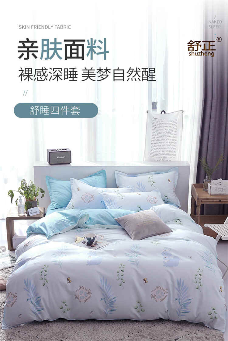 舒正 亲肤棉床单被套枕套四件套-蓝灵SZJT-0077
