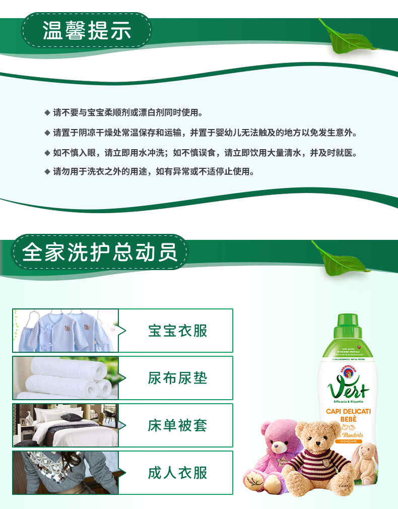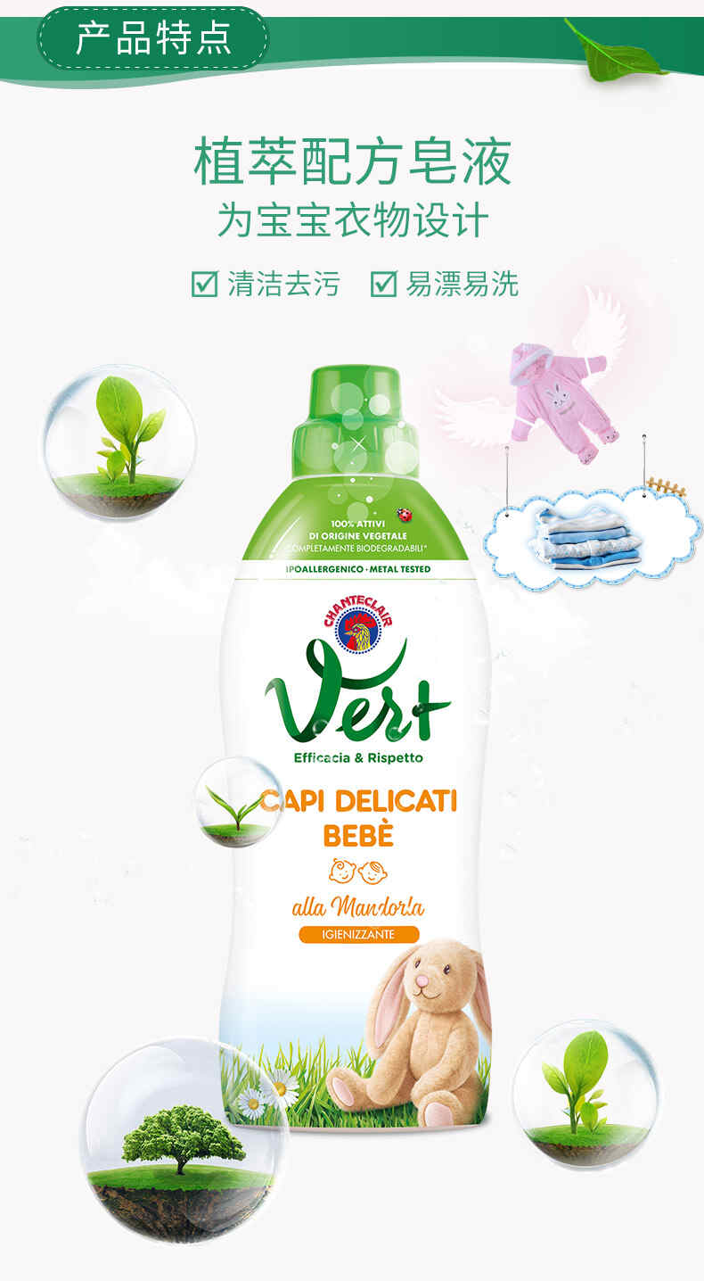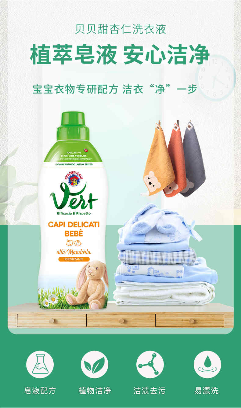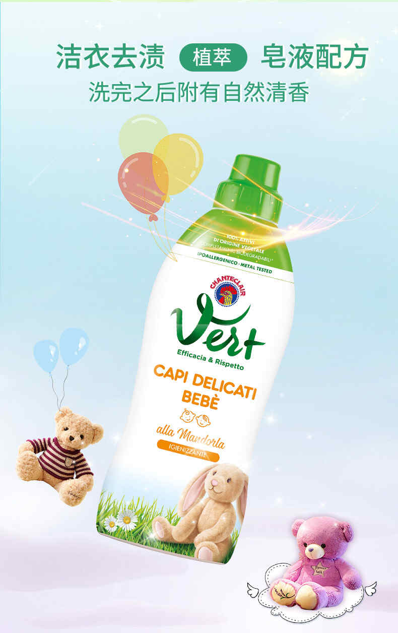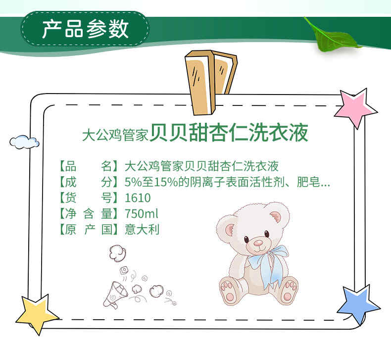 大公鸡管家 儿童贝贝甜杏仁洗衣液750ml(植物配方)