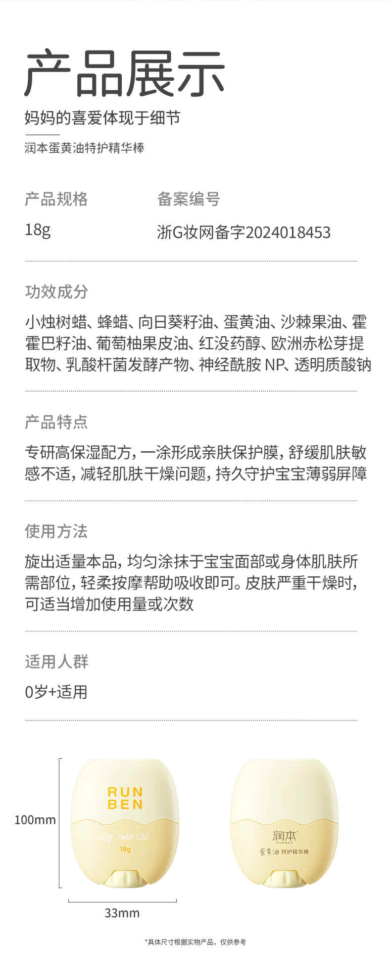 润本(RUNBEN)蛋黄油特护精华棒18g
