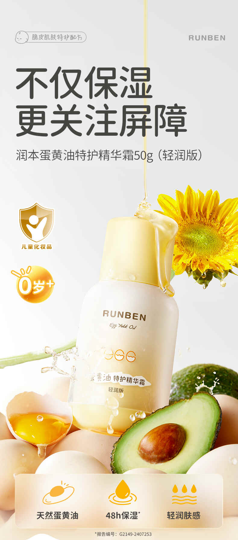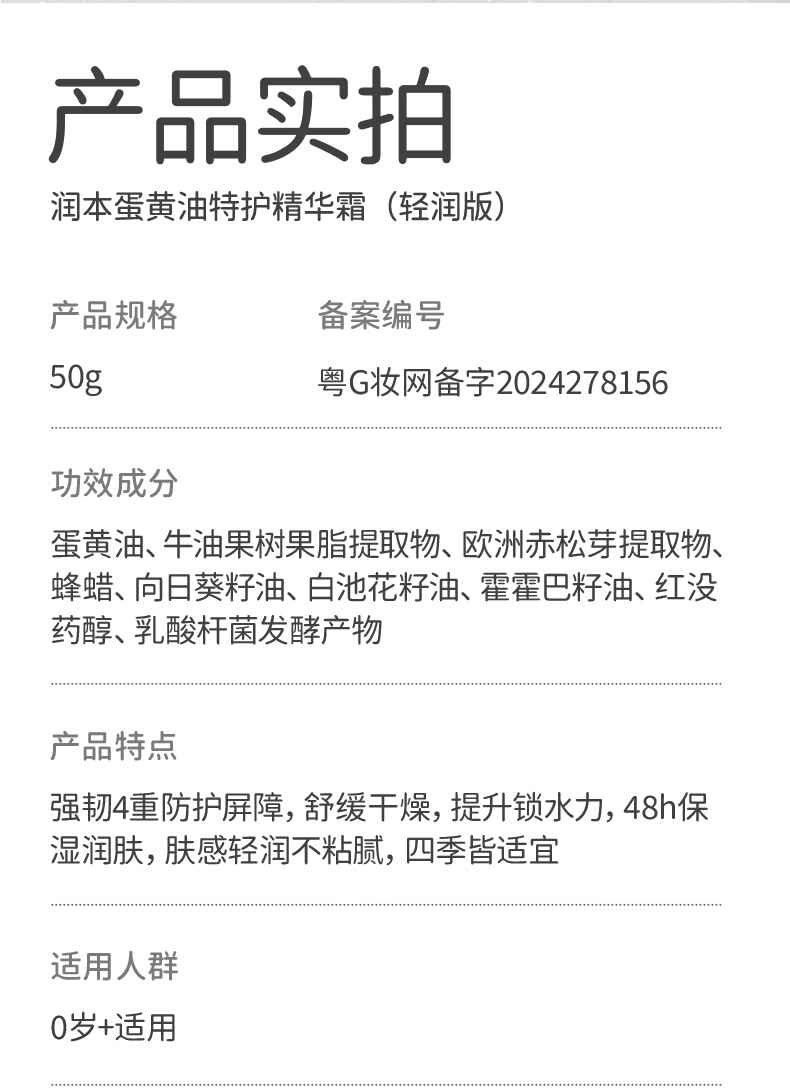 润本(RUNBEN)蛋黄油特护精华霜(轻润版)50g
