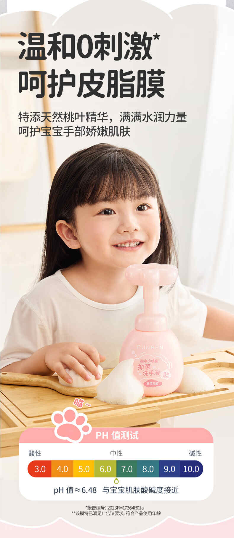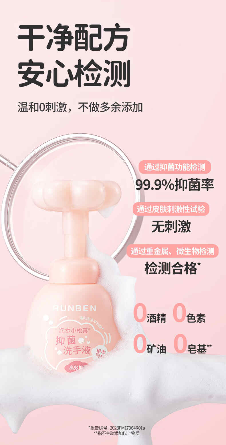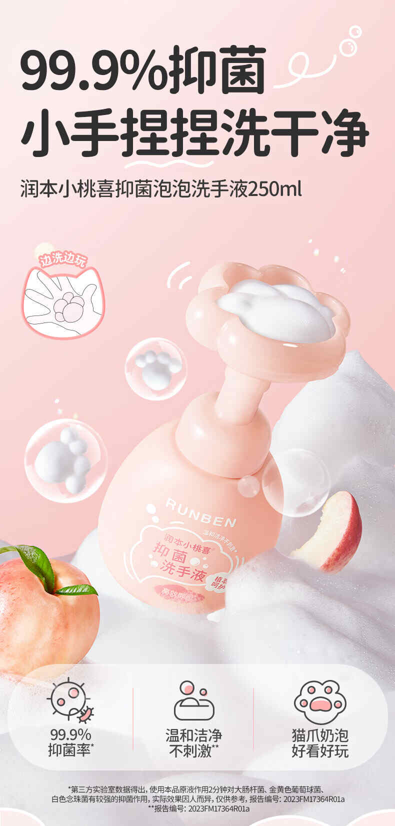 润本(RUNBEN)小桃喜抑菌洗手液250ml