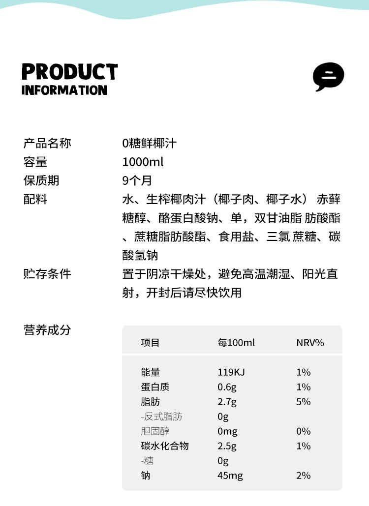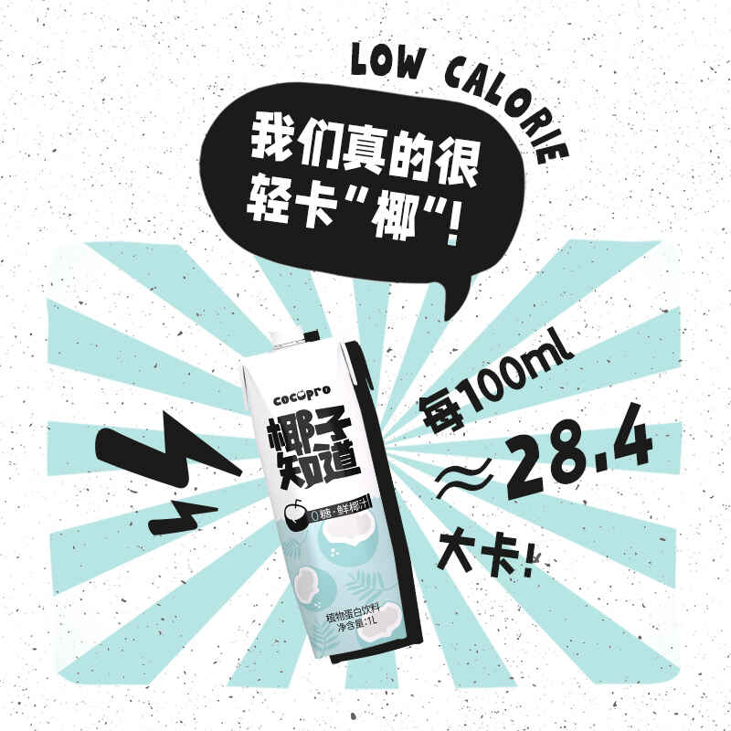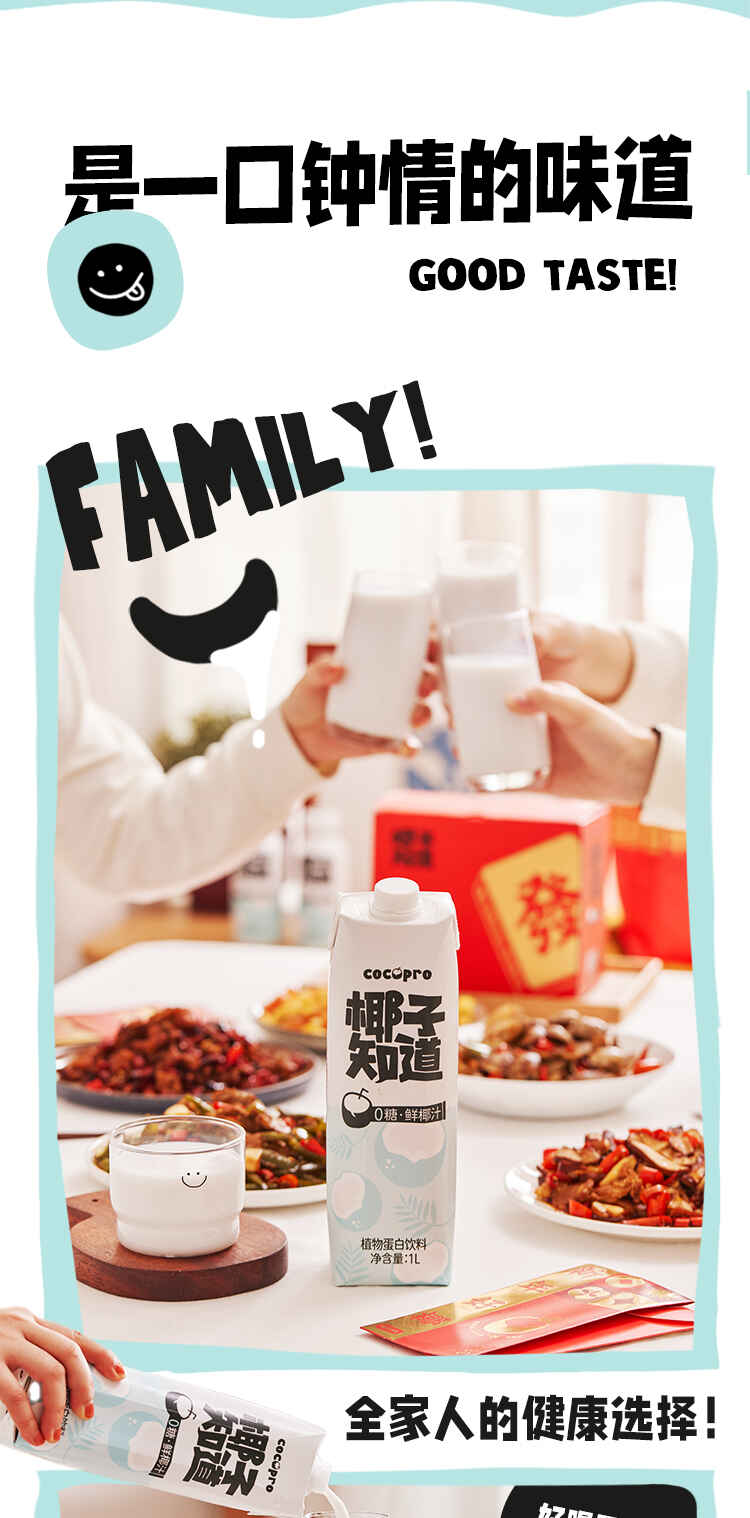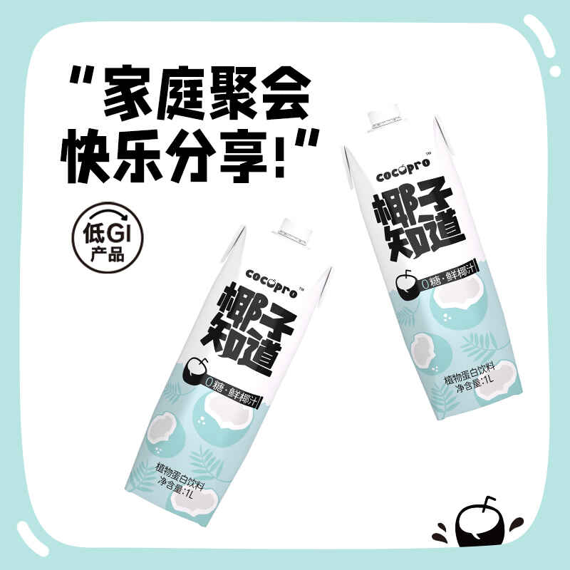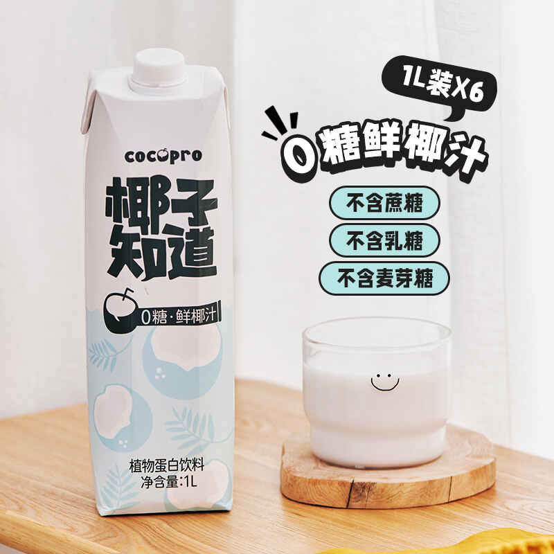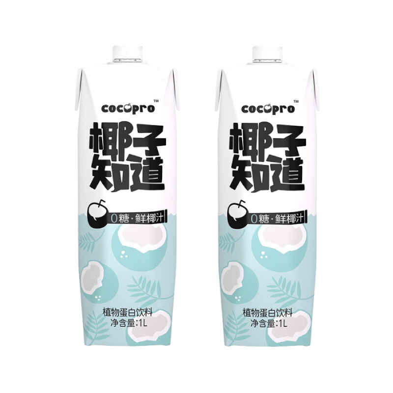 椰子知道0糖鲜椰汁家庭分享装1L*2瓶/件