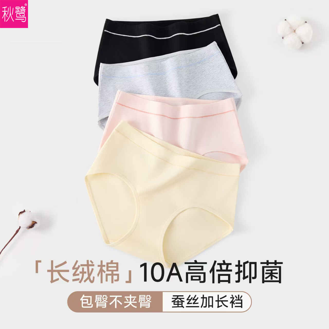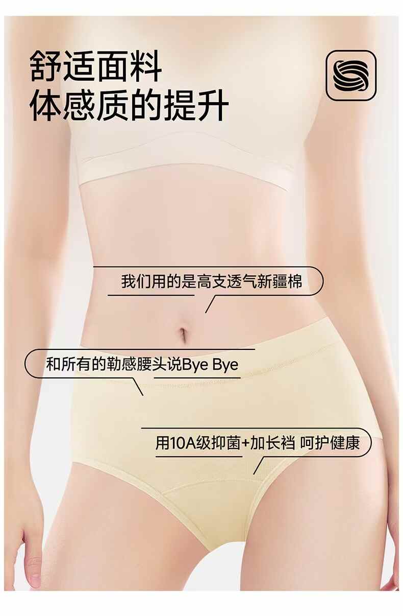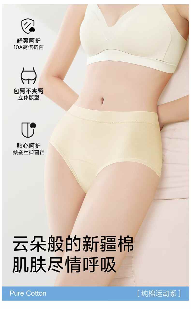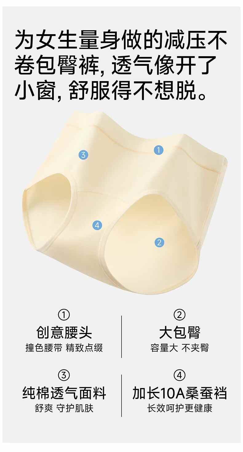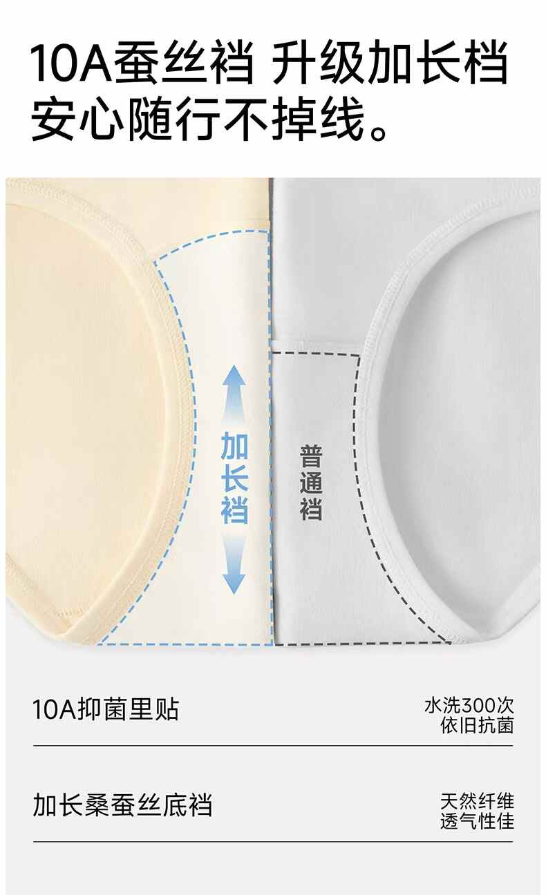 长绒棉女蚕丝升级加长底裆亲肤内裤3条