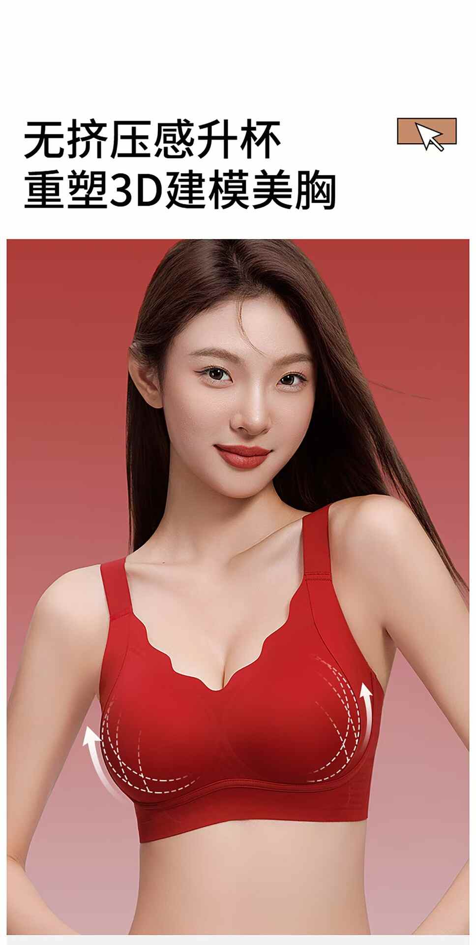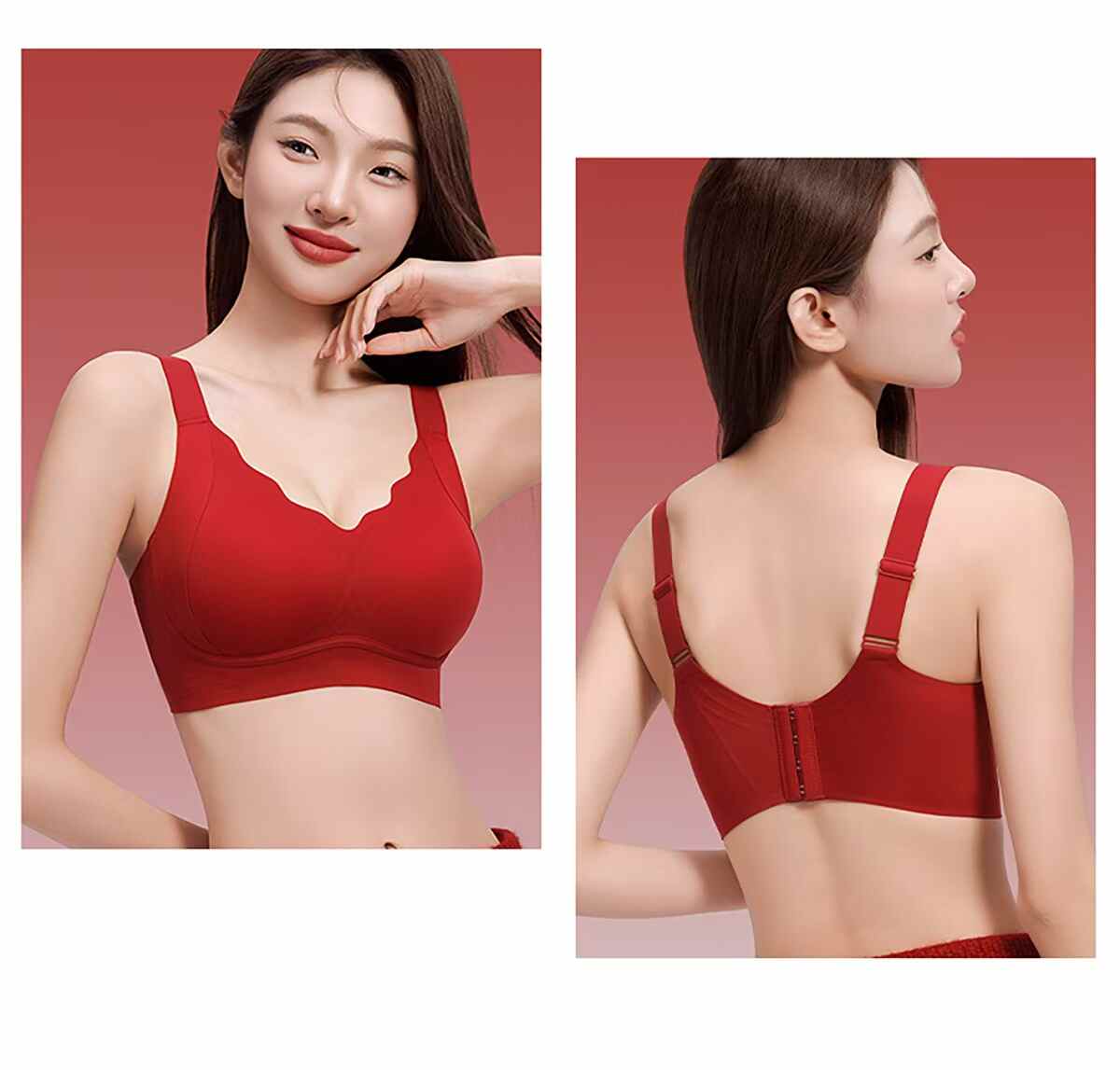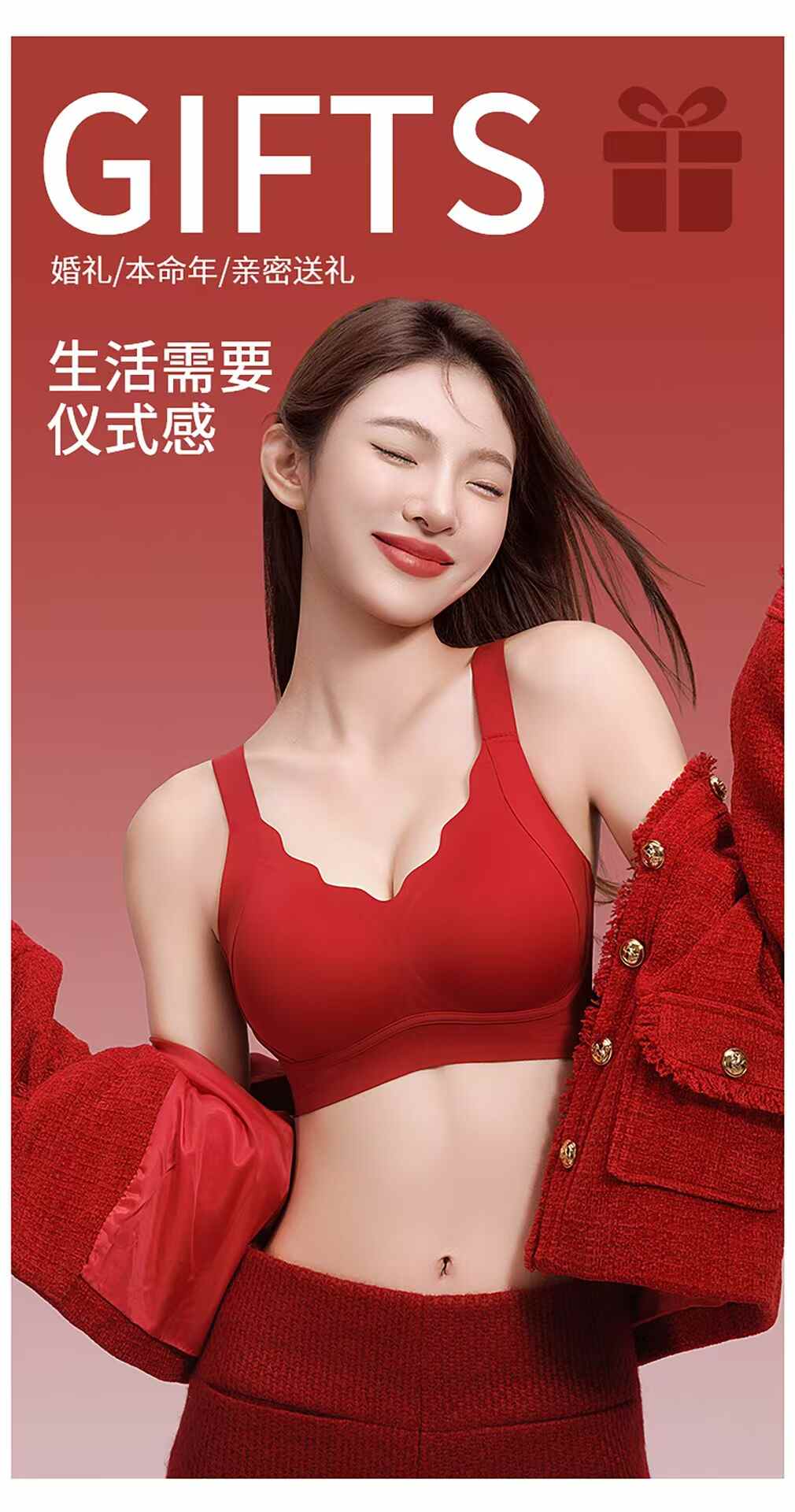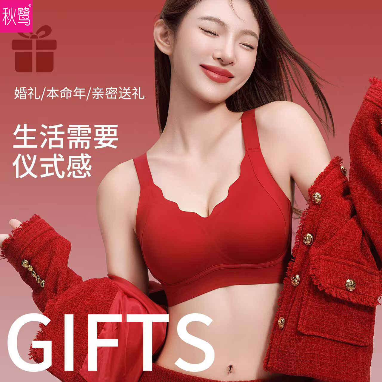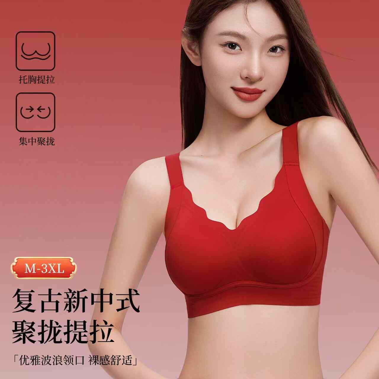 红色内衣本命年结婚大胸显小聚拢收副乳防下垂文胸