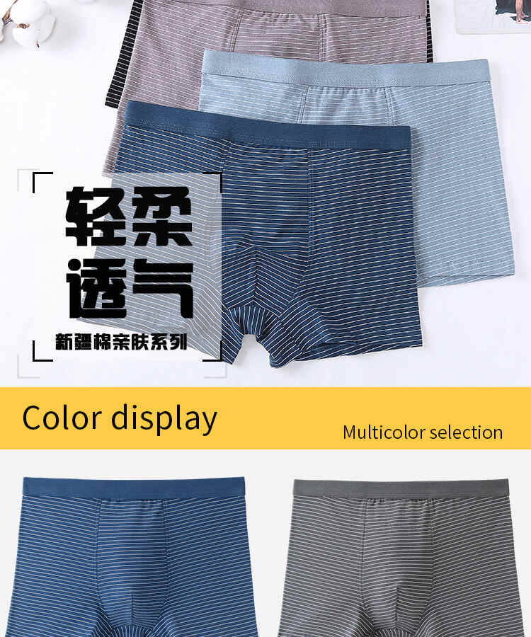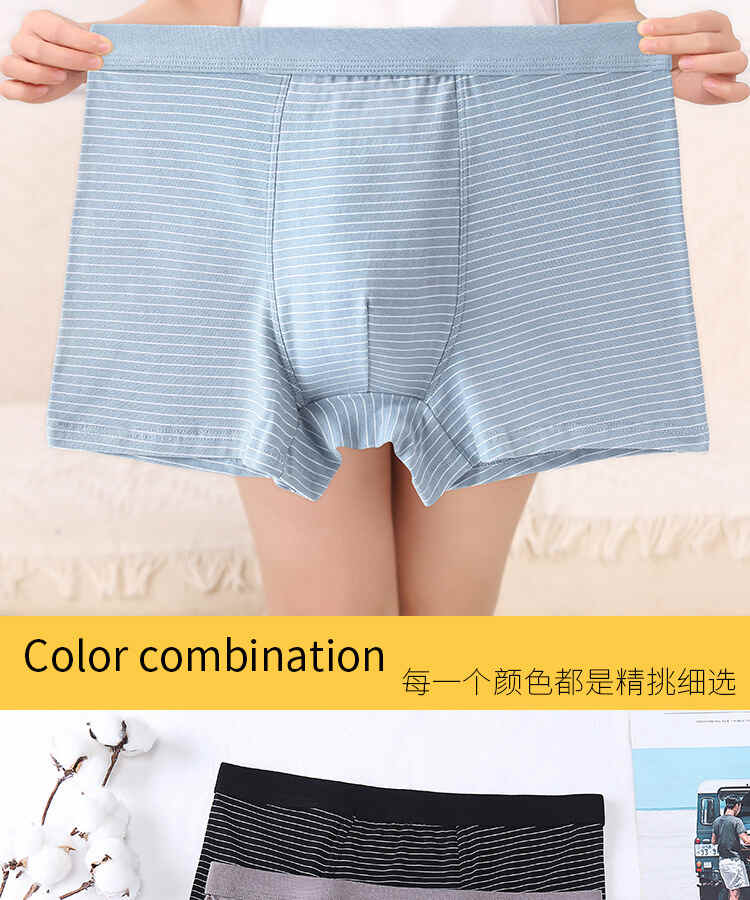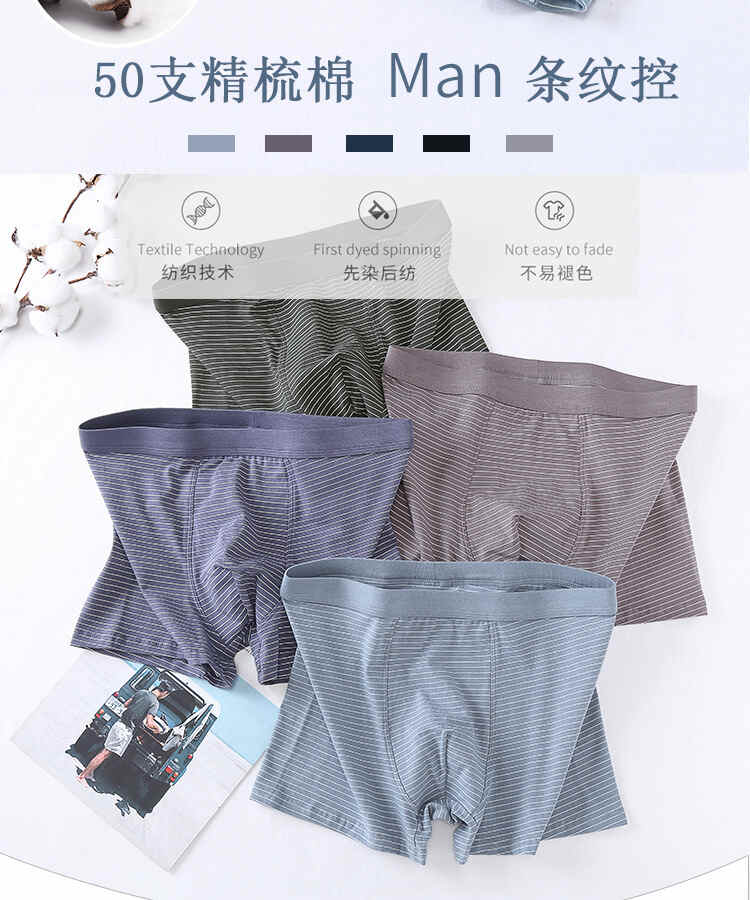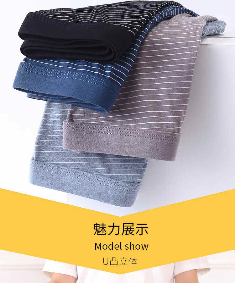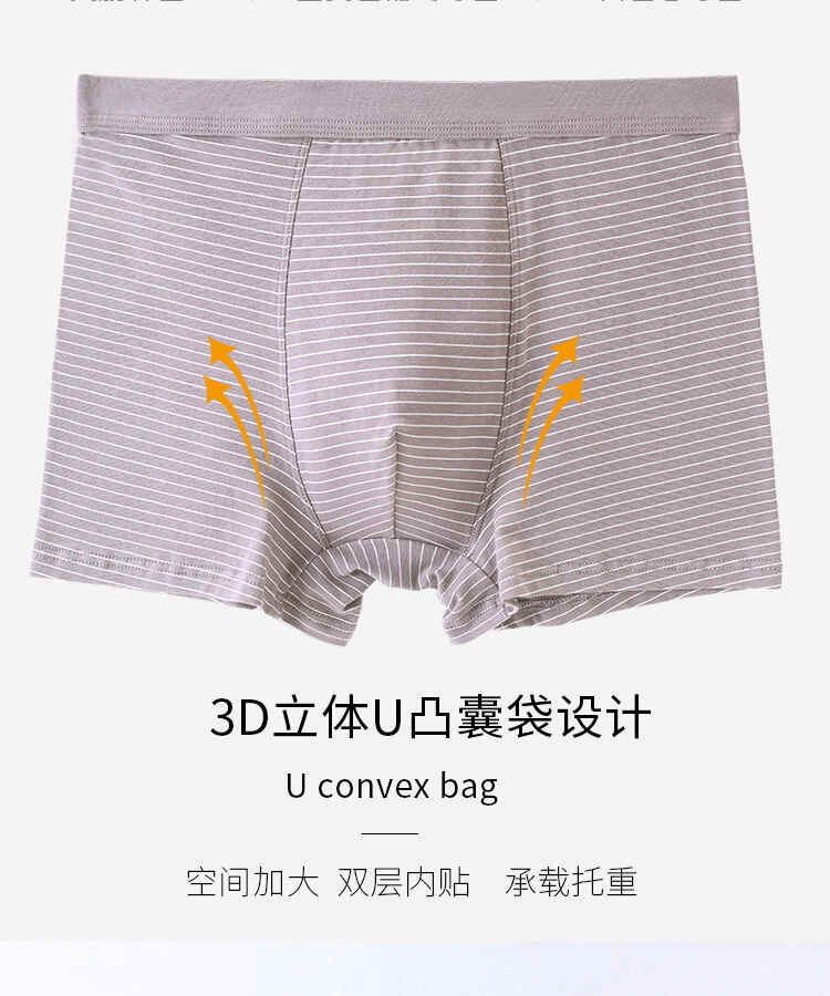 福满潮歌无痕高腰纯棉平角裤男士内裤3条