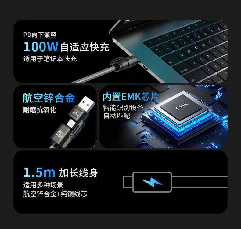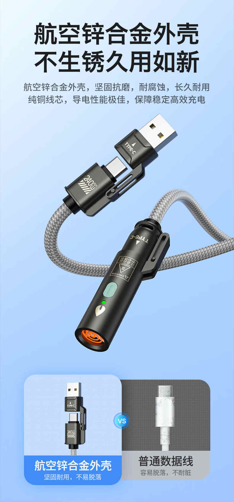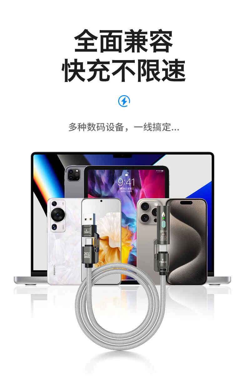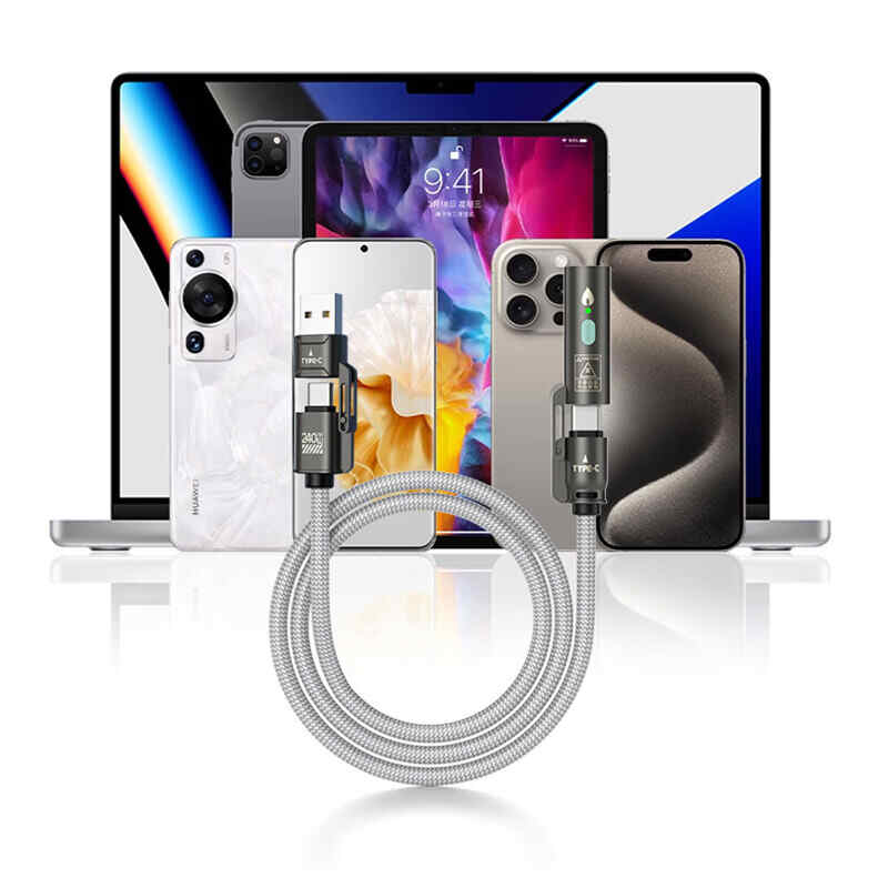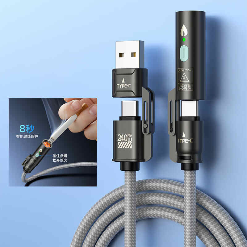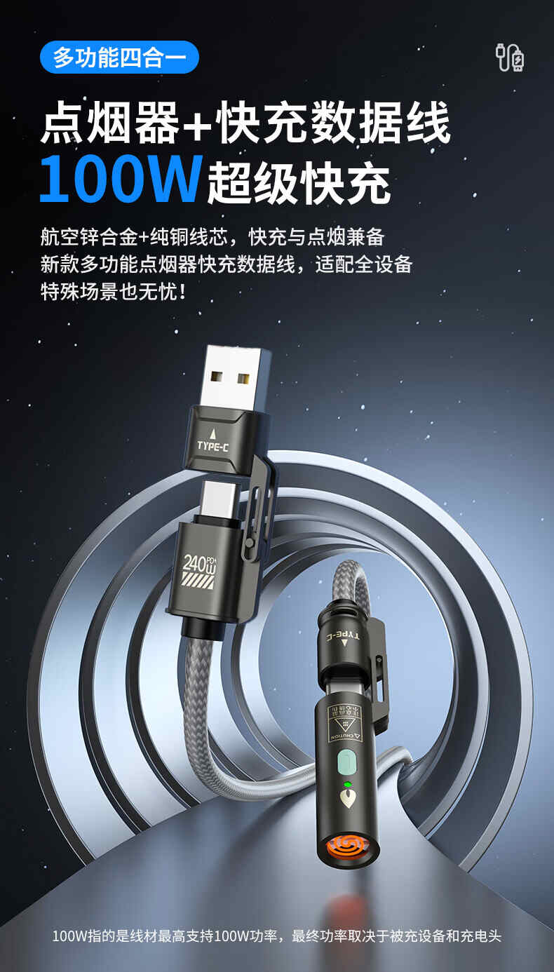 HYUNDAI 锌合金四合一点烟器快充数据线 YH-NB013充电线