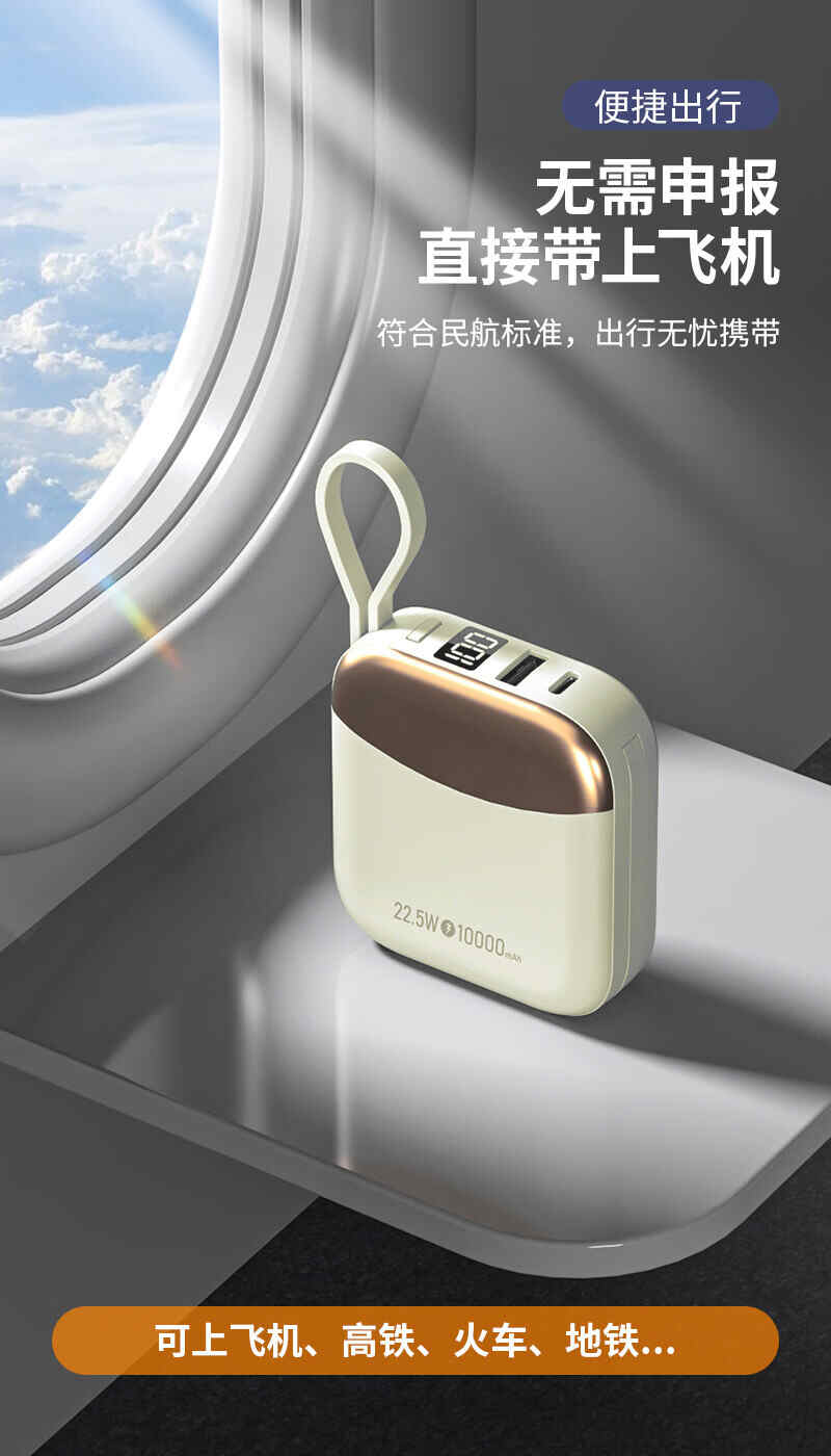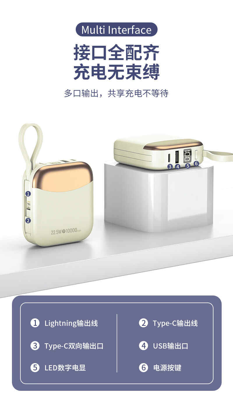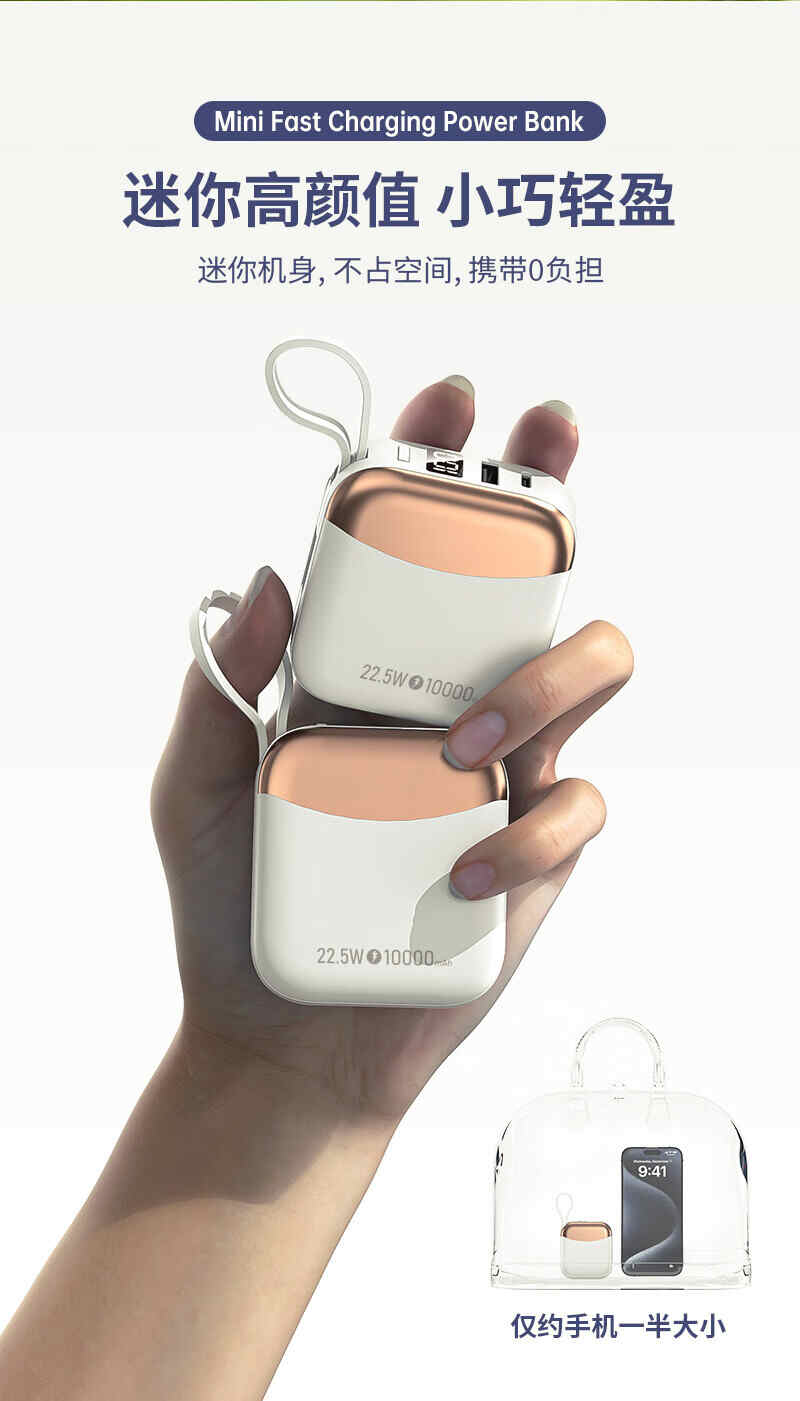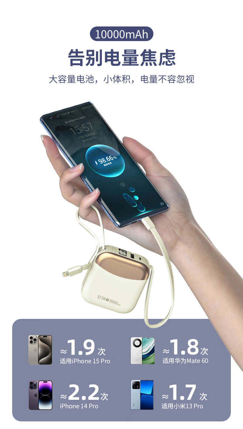 HYUNDAI自带线无线充移动电源10000mah超薄小巧22.5W快充R56J充电宝