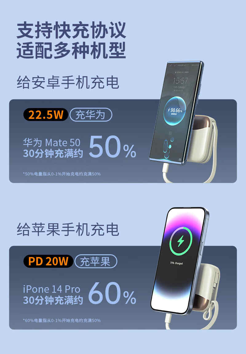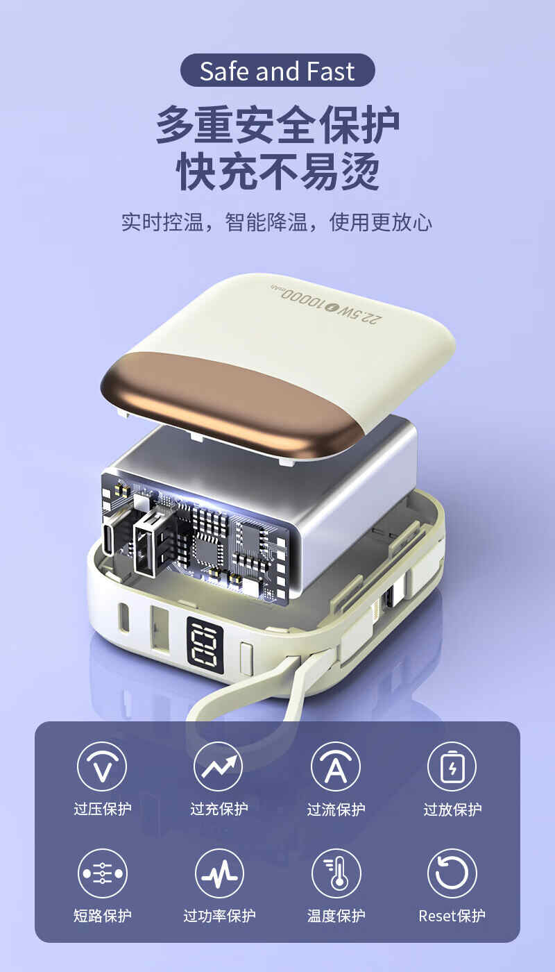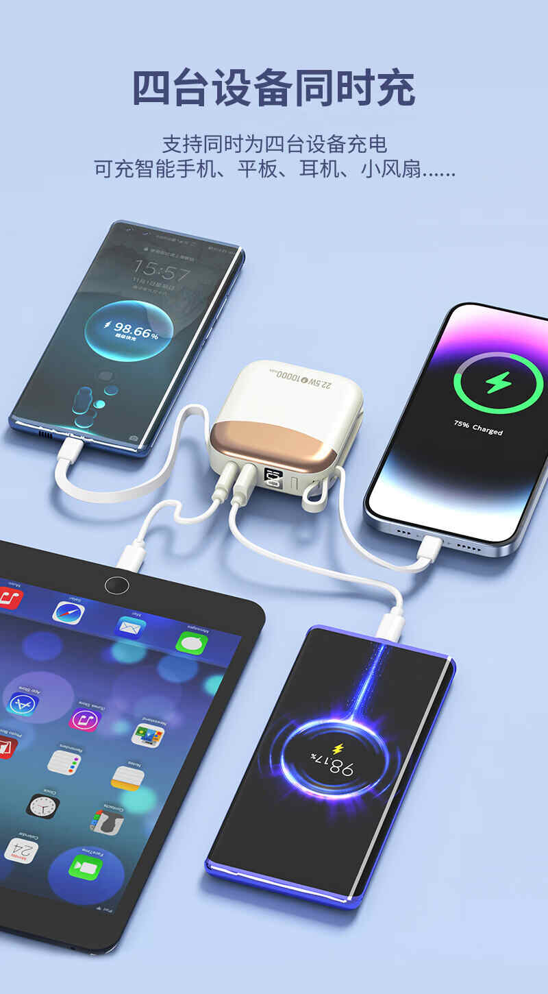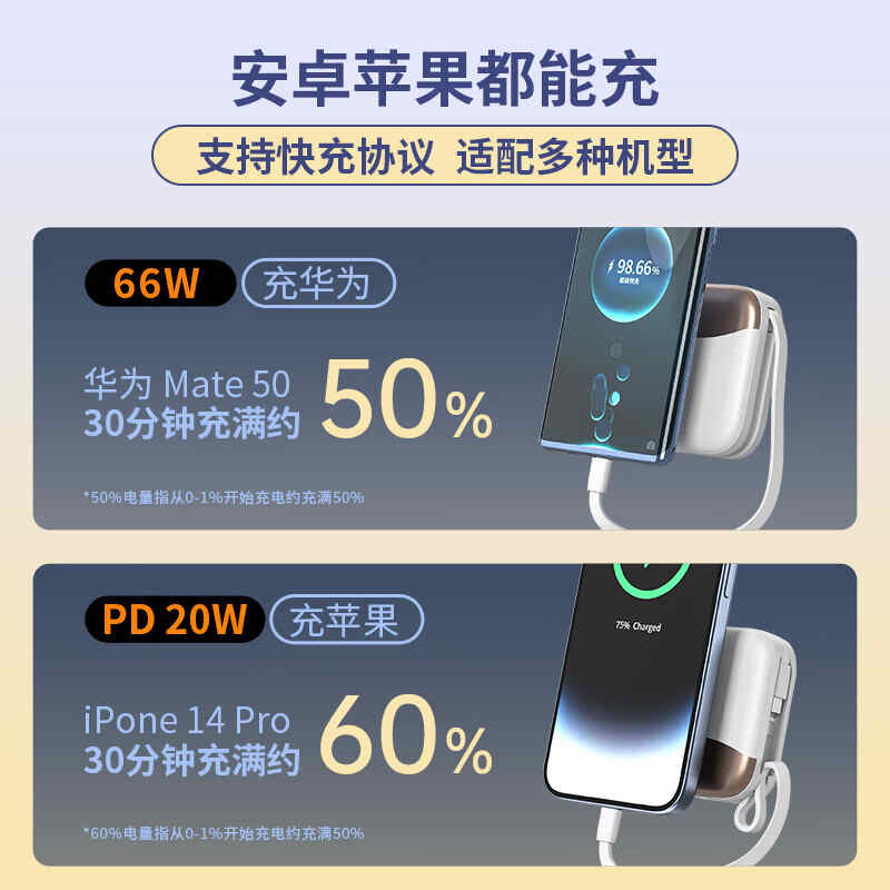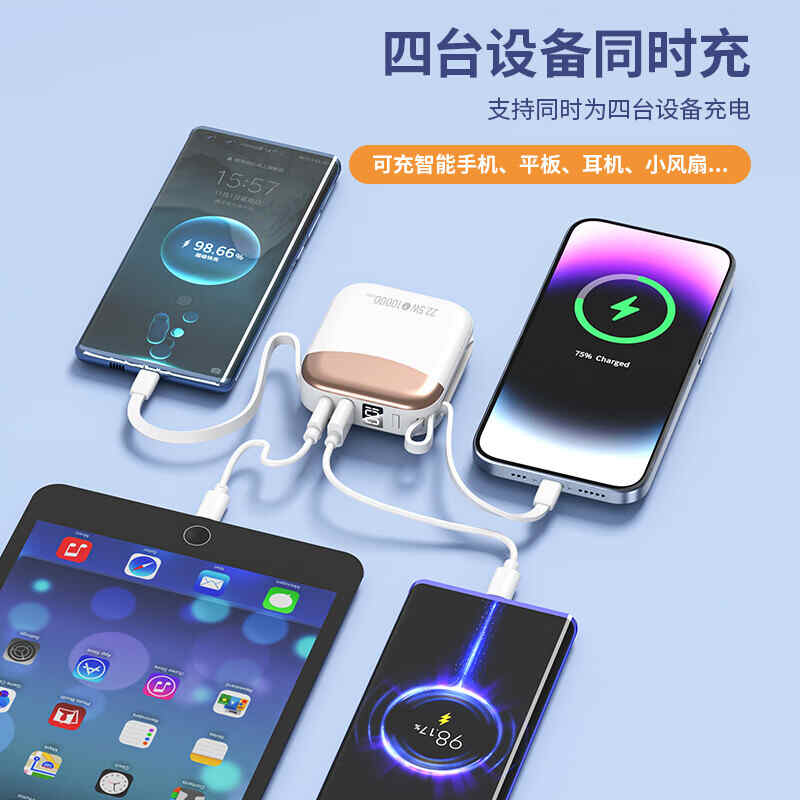 HYUNDAI自带线无线充移动电源10000mah超薄小巧22.5W快充R56J充电宝