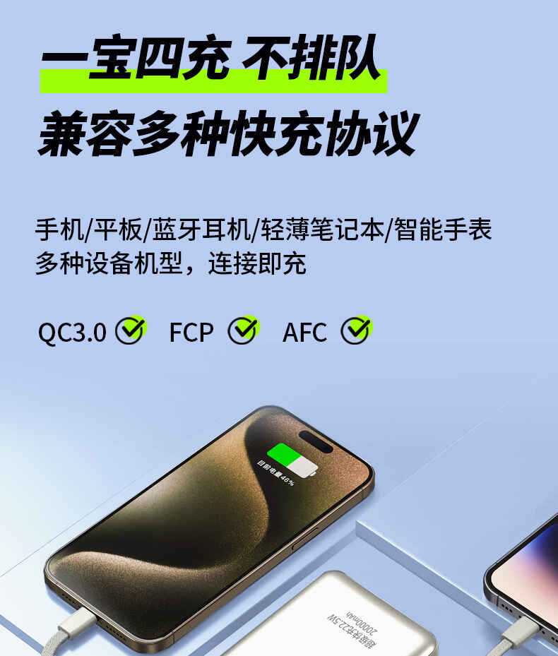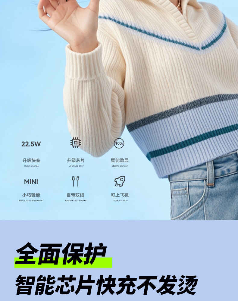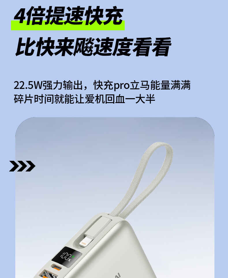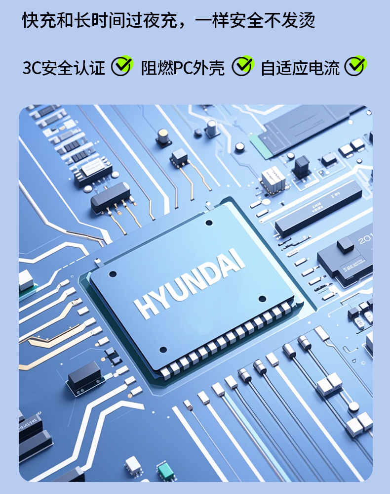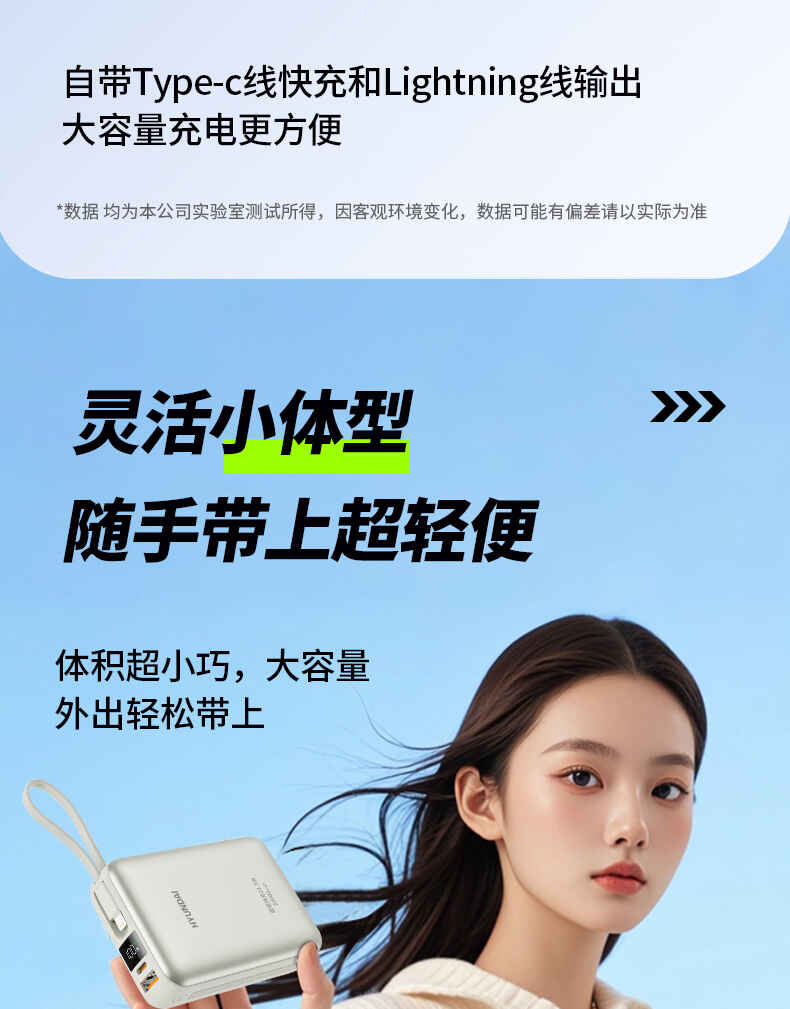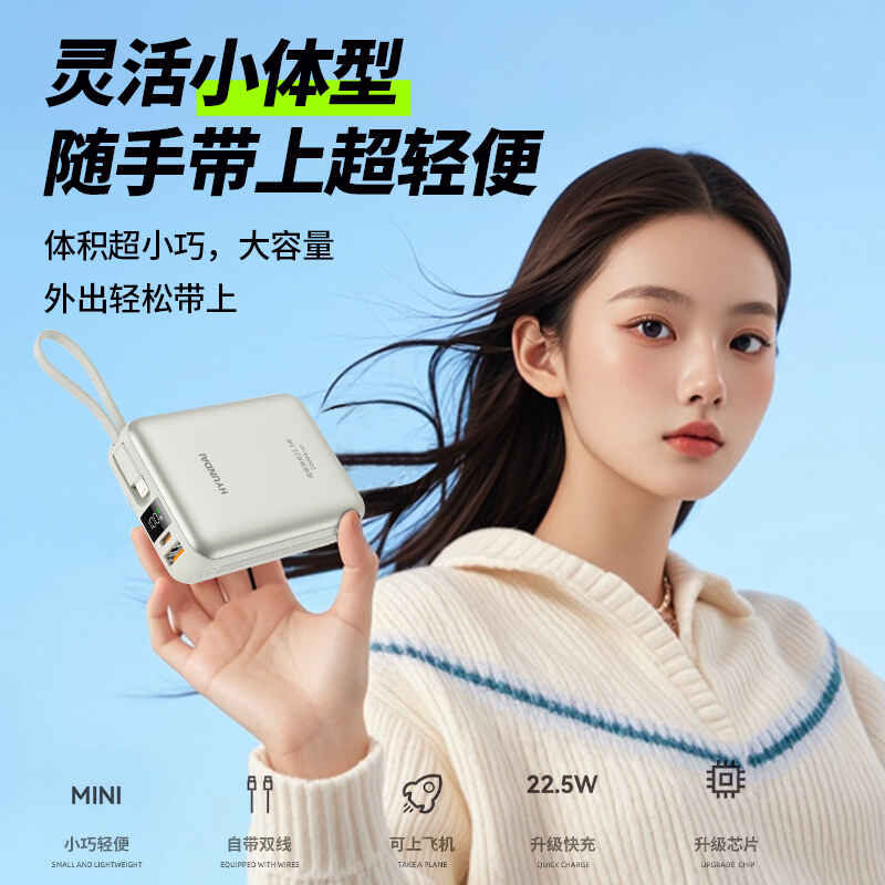 HYUNDAI 自带线快充移动电源20000毫安大容量电源22.5W快充 T180LF充电宝