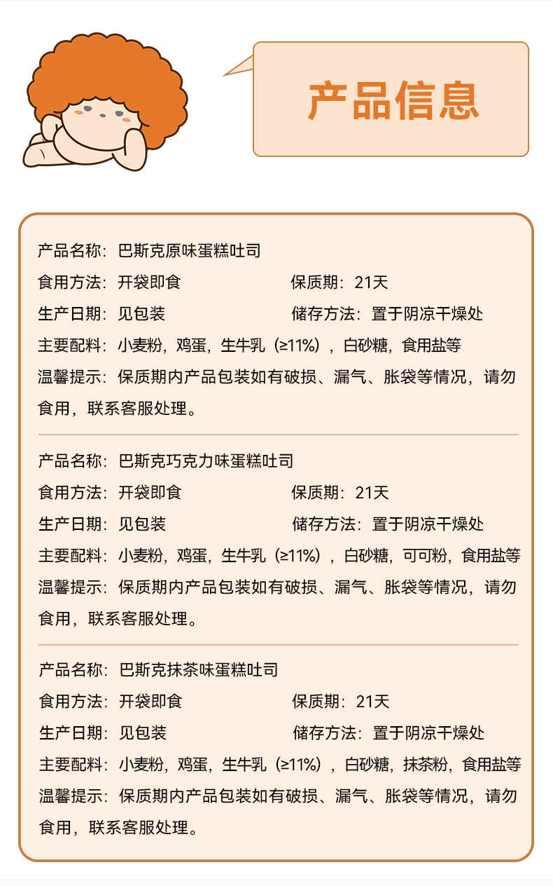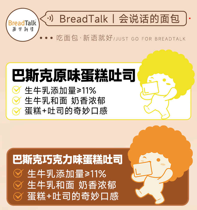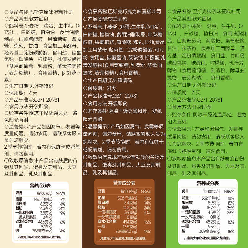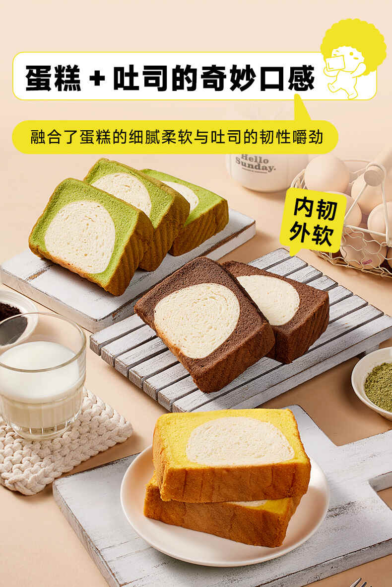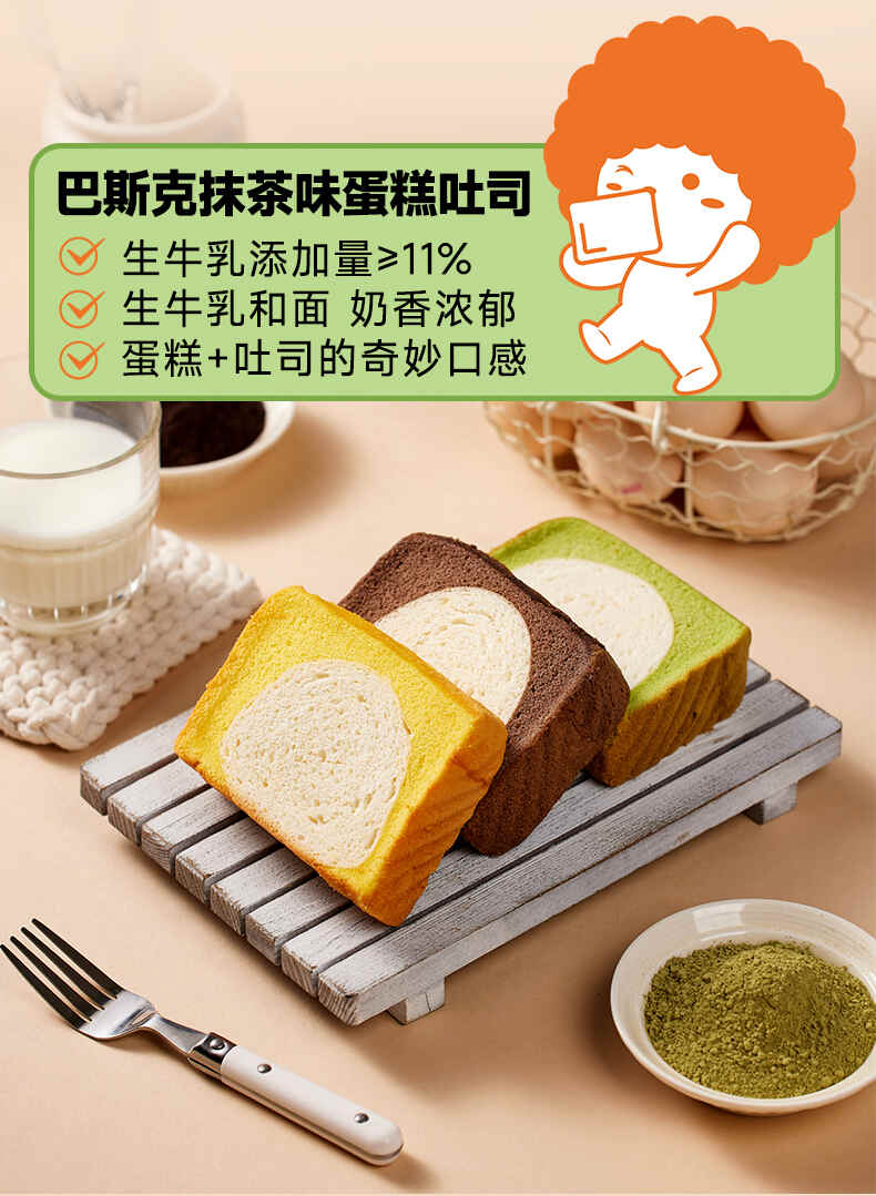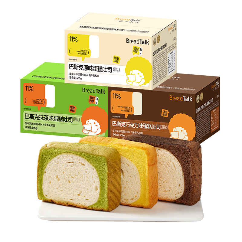 面包新语巴斯克蛋糕吐司原味/巧克力味/抹茶味300g*2箱(每箱5包)