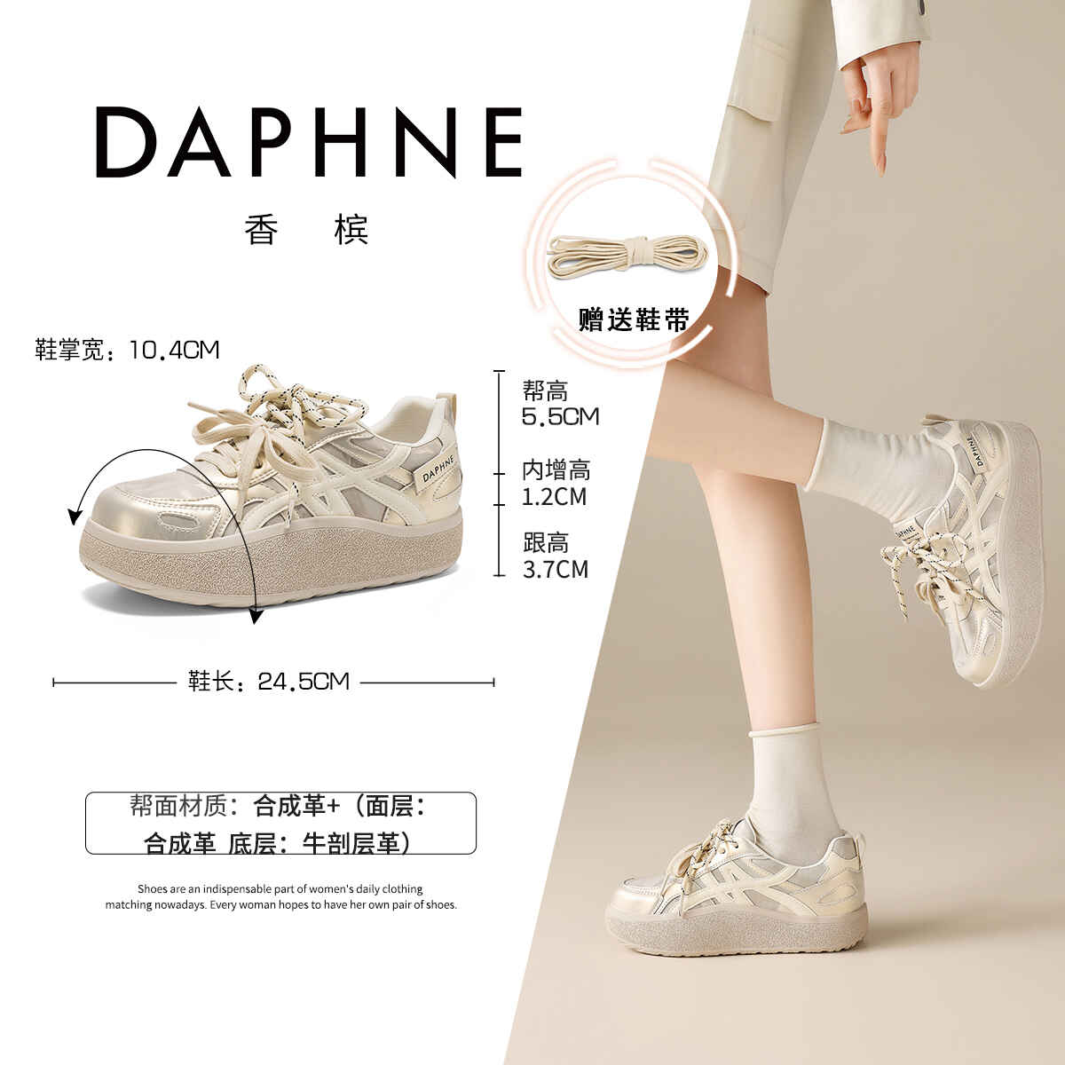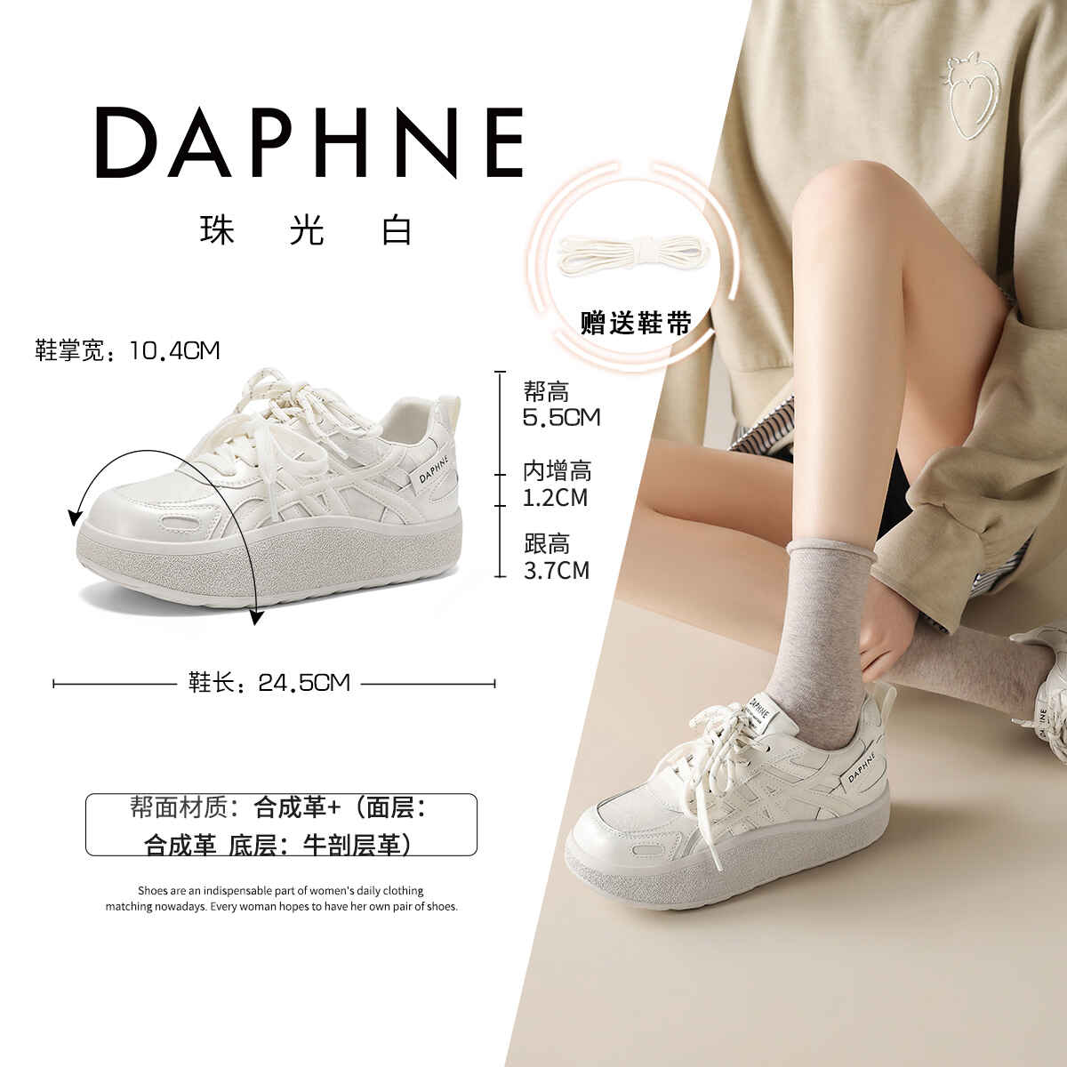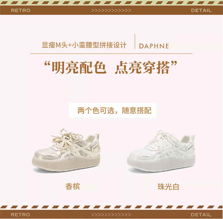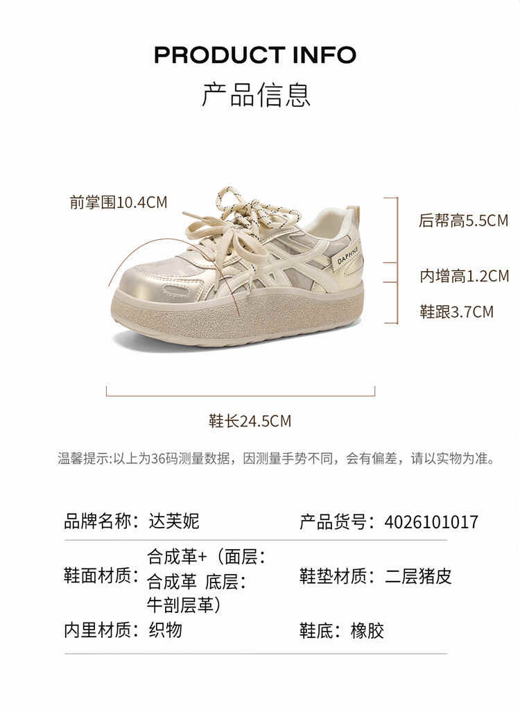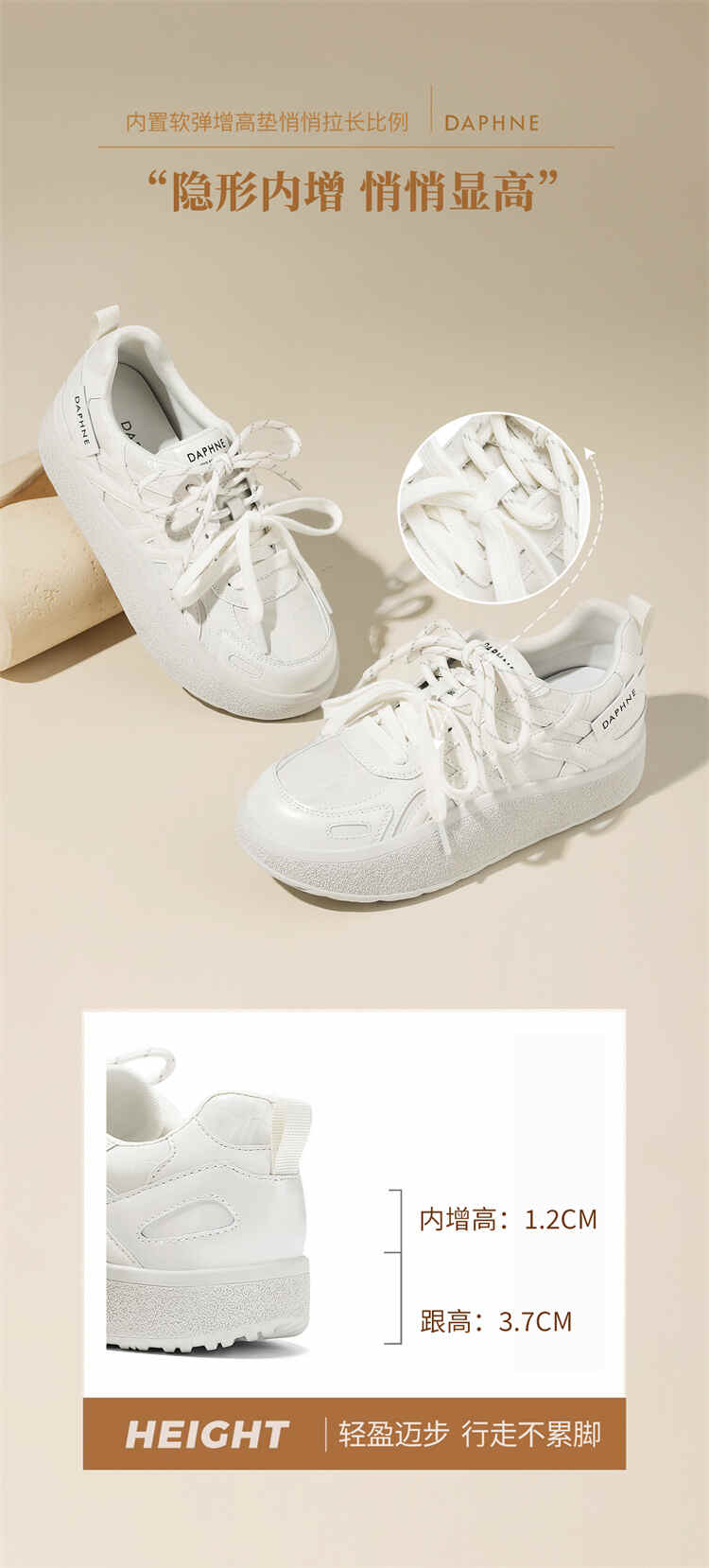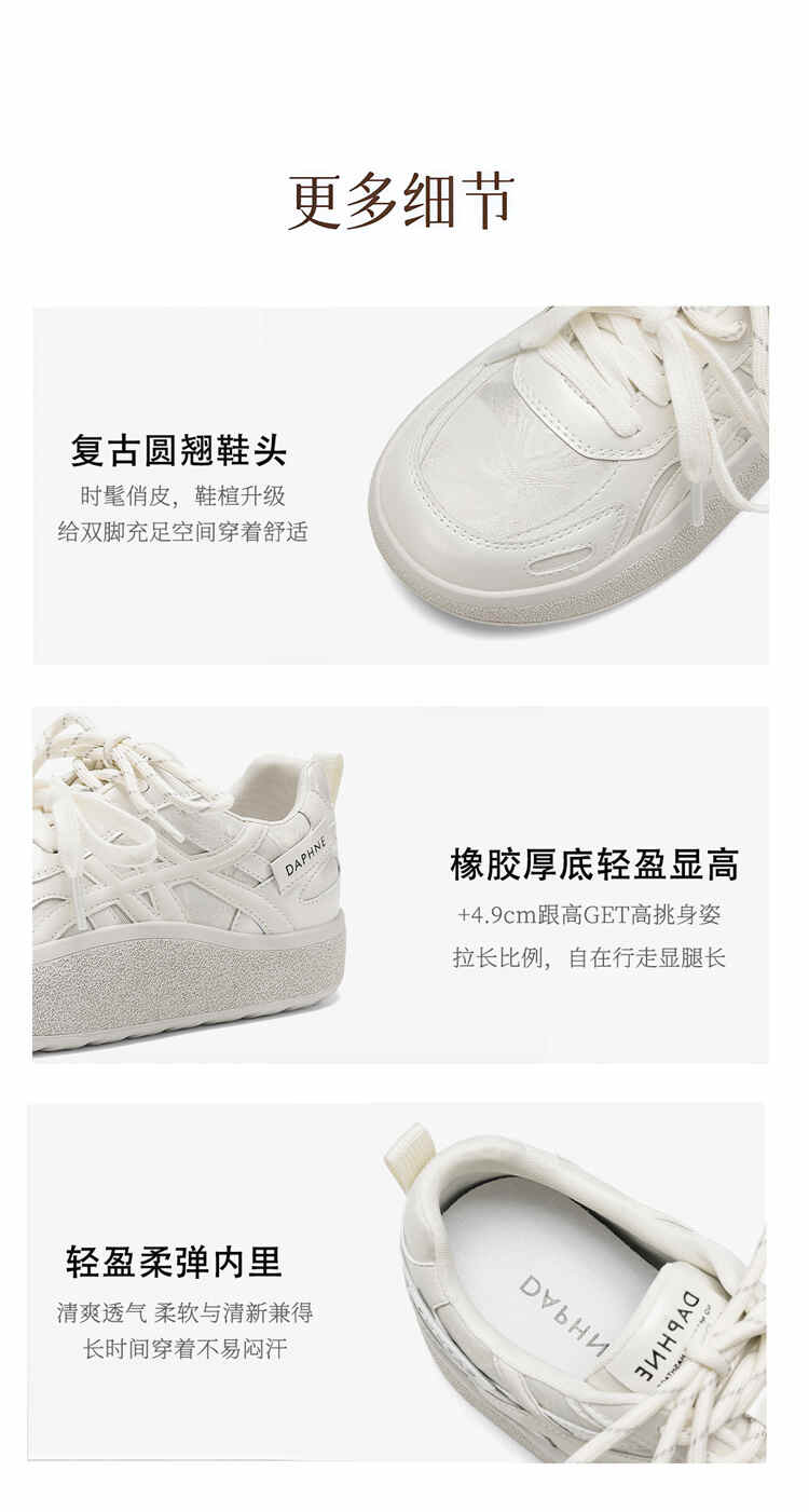 达芙妮内增高小白鞋女款2026新款春季百搭休闲德训鞋增高厚底板鞋