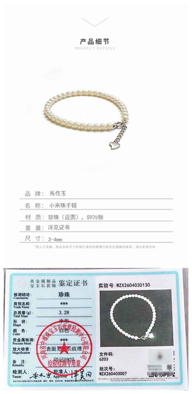 馬传玉 S925银经典淡水珍珠小米手链MCY203精美礼盒