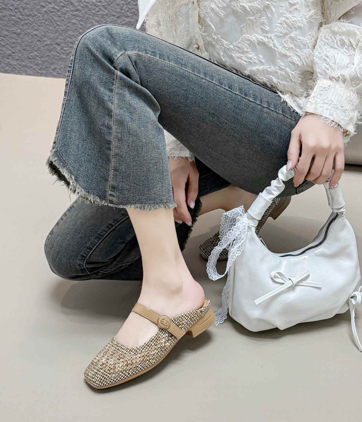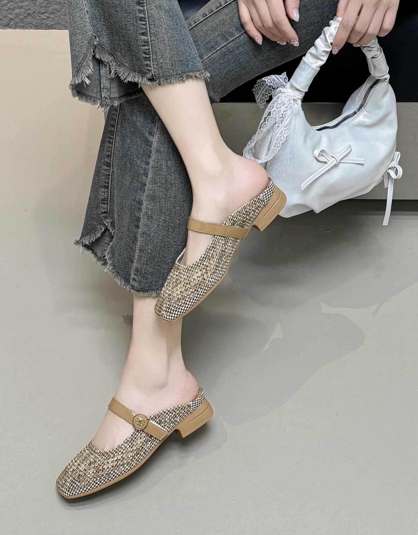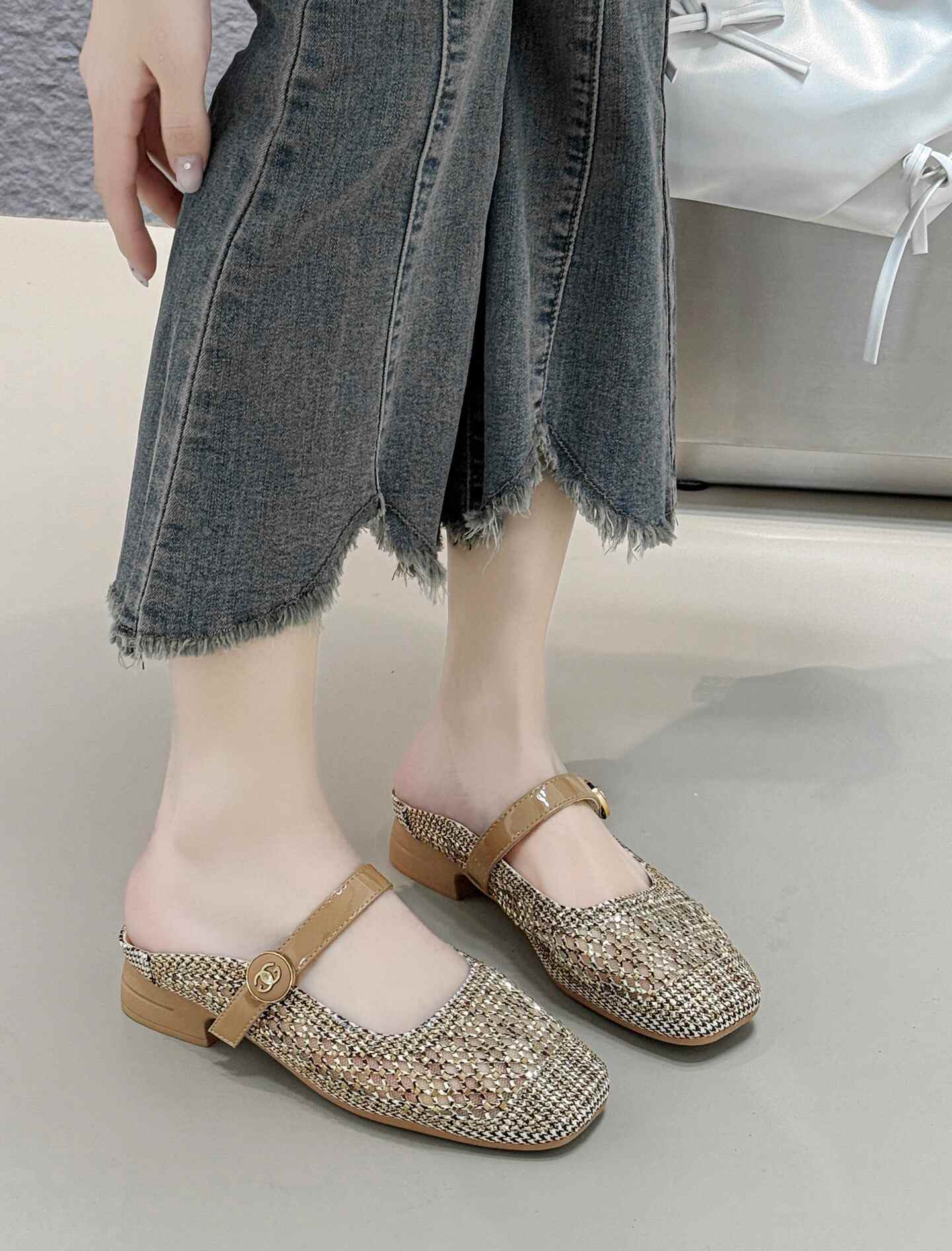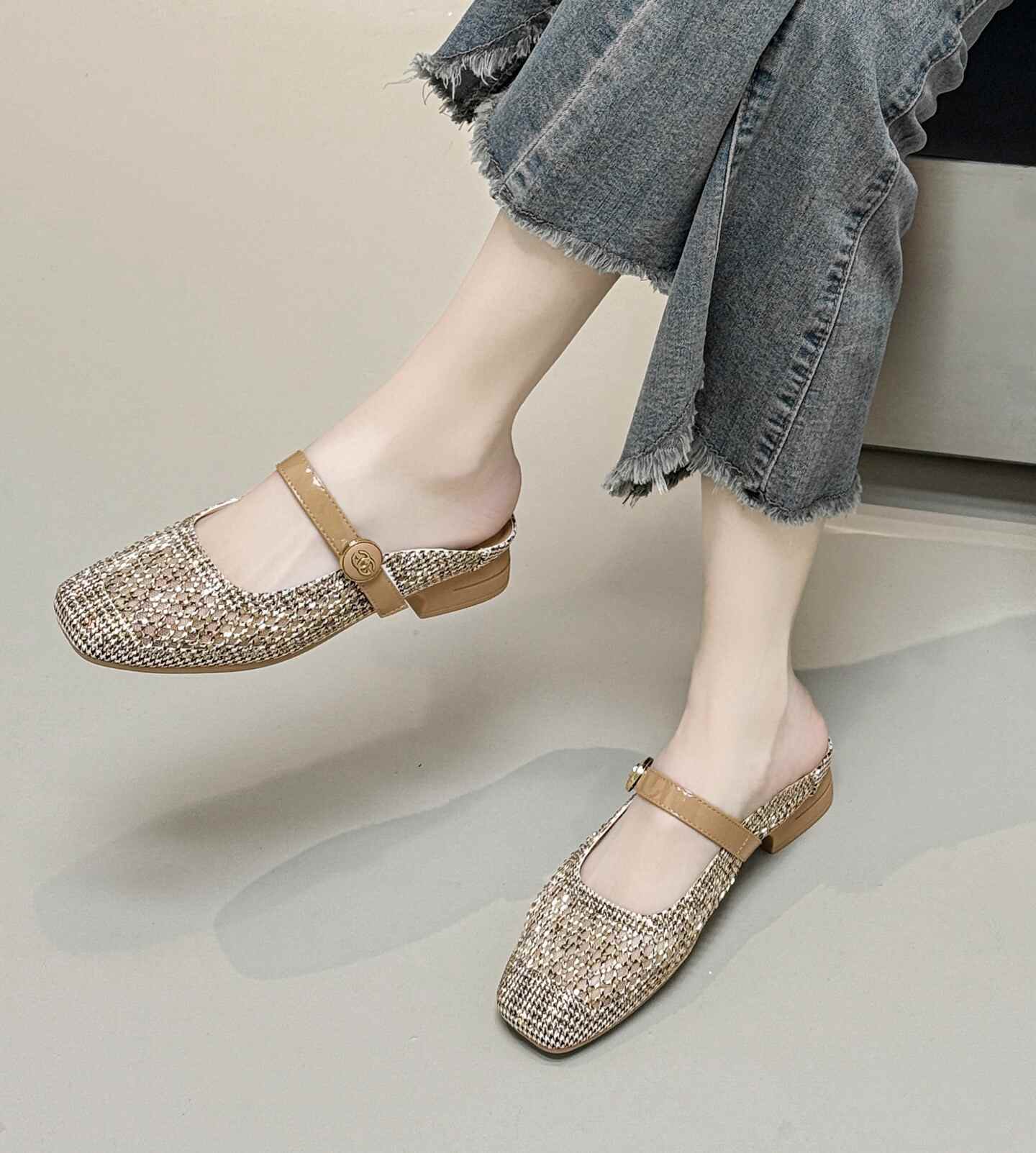 36012网纱透气时装外穿包头拖鞋女百搭室外软底凉拖新款时尚低跟妈妈鞋